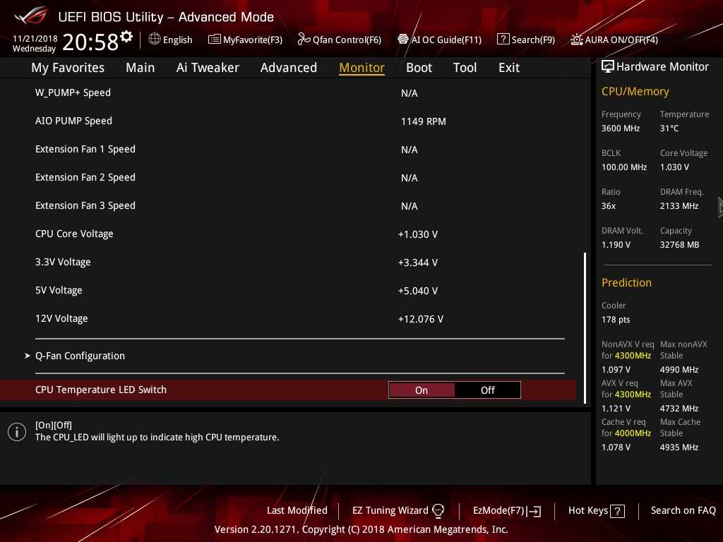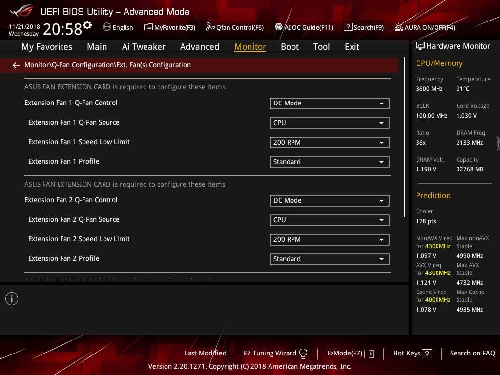 Раздел «Monitor» содержит информацию о температурах, напряжении и скоростях вращения подключенных систем охлаждения. Здесь же можно настроить алгоритм работы последних. Доступно управление PWM и DC.