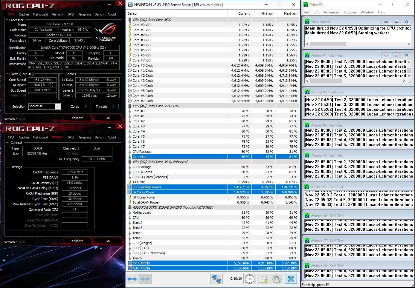 В попытке взять контроль в свои руки мы установили в BIOS значение CPU Load-Line Colibration — Level 7, а напряжение установили вручную на 1.2 В. С этими настройками процессор Intel Core i7-9700k снизил свое энергопотребление с 200 до 170 Вт, а его температура упала с 90 до 81 градуса Цельсия. При этом рабочее напряжение на ядрах процессора под нагрузкой составило 1.229 В. Этот пример показывает, что в случае с ROG Strix Z390-E Gaming управление питанием лучше взять под контроль пользователя, а не доверять автоматике.
