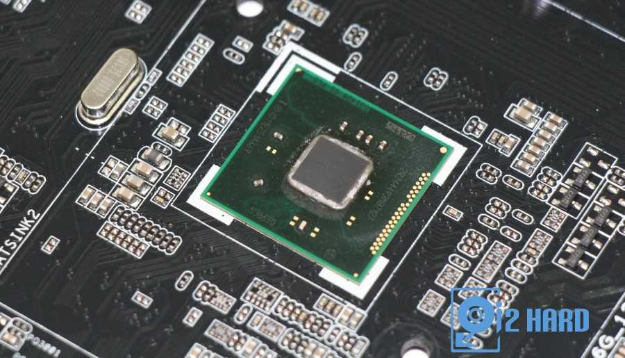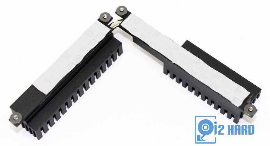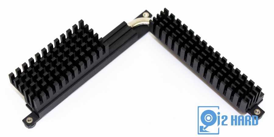 Подсистема питания процессора закрыта двухсекционным радиатором с тепловой трубкой, который контактирует с силовыми элементами через термопрокладки.