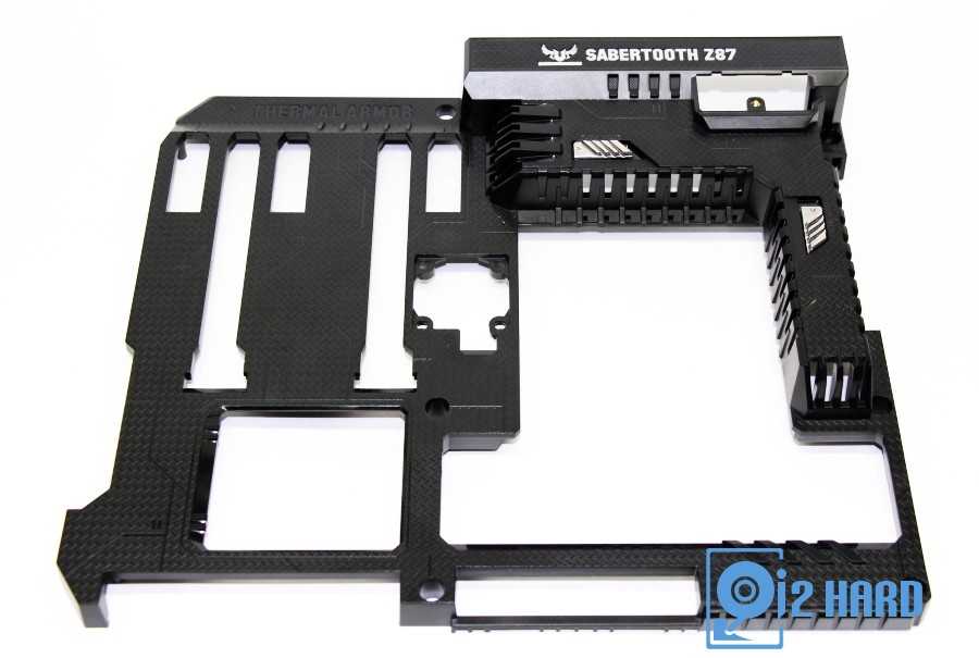 Большая часть ASUS Z87 Sabertooth закрыта черным пластмассовым кожухом, который помимо придания брутального вида также защищает материнскую плату от механических повреждений.