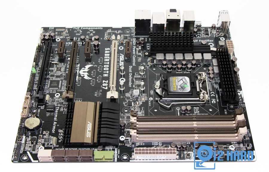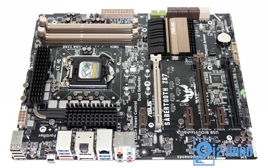 ASUS Z87 Sabertooth со снятым пластиковым кожухом приобретает вид обычной материнской платы.
