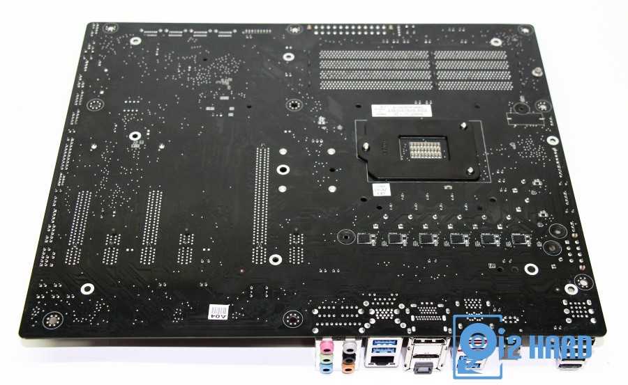 С обратной стороны платы также присутствует защита в виде металлической пластины. Помимо защитной функции эта пластина также выполняет и охлаждающую роль. Часть транзисторов преобразователя питания процессора выведены на обратную сторону материнской платы, и контактируют с металлической пластиной через термопрокладки.