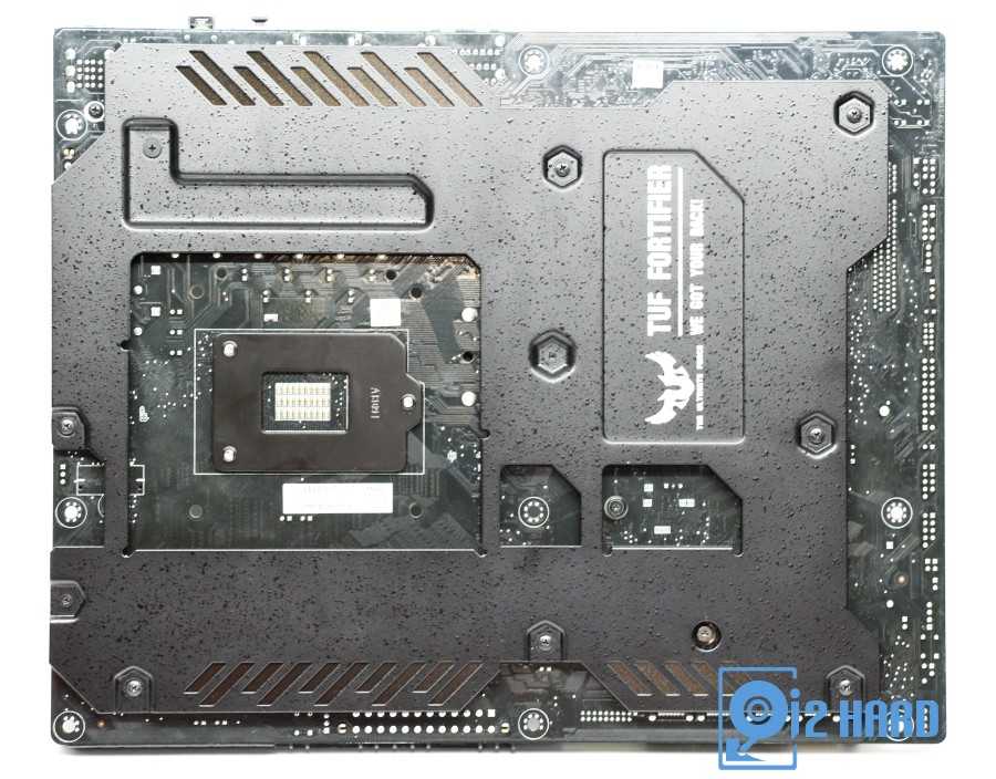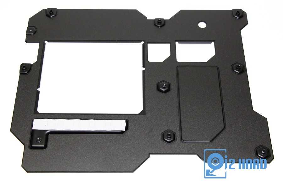 Металлическая пластина, установленная сзади материнской платы, помимо защитной и охлаждающей функции также дополнительно защищает материнскую плату от перегиба.
