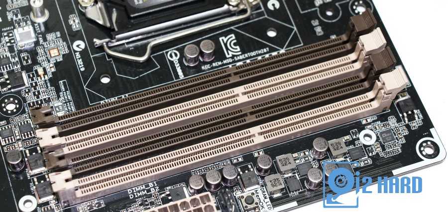 На материнской плате размещено четыре слота DDR3, в каждый из которых можно установить модуль памяти объемом 8Гб, что в совокупности дает максимальный объем памяти в 32Гб. Поддерживаются модули памяти DDR3 частотой от 1066 до 1866 MHz. Питание оперативной памяти реализовано по двухфазной схеме.