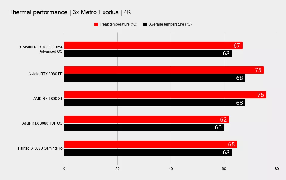 В остальном его стандартная игровая производительность немного тусклая по сравнению с обеими другими картами RTX 3080 и AMD RX 6800 XT, учитывая, насколько близко сражается этот конкретный графический процессор.