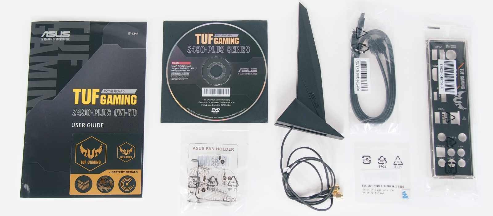 Вместе с материнской платой TUF Gaming Z490-Plus Wi-Fi поставляется:
