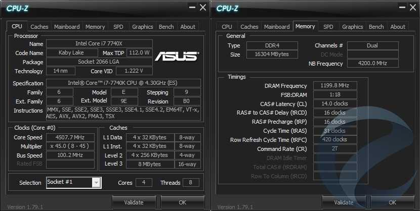 - Центральный процессор: Intel Core i7-7740X 4.3 ГГц (инженерный образец);