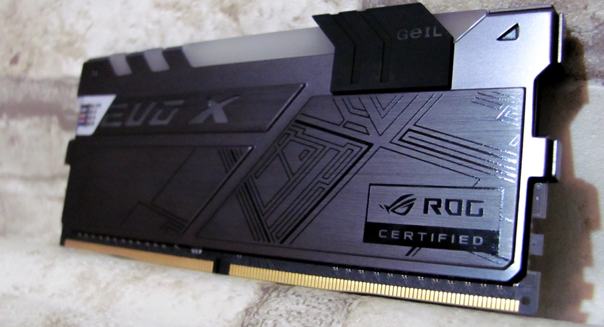 В роли ОЗУ — дуэт из 8-гигабайтных плашек GeIL EVO X ROG Certified, работающих на частоте 3200 МГц с таймингами 16-17-17-35. Обзор здесь.