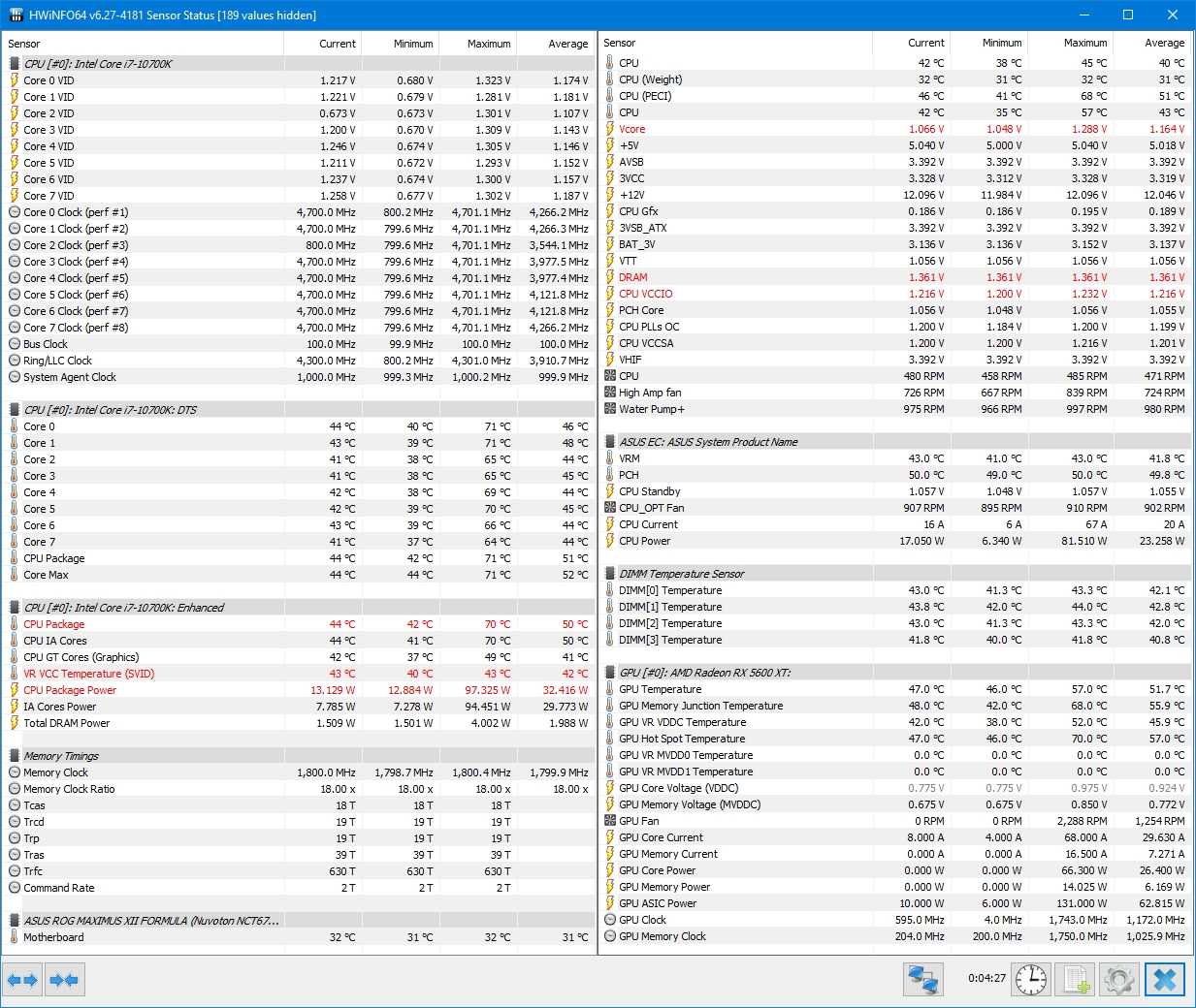 Система нагружалась игровой и рабочей нагрузкой. В обоих случаях мы отслеживали температуру процессора Intel Core i7-10700k и видеокарты GIGABYTE Radeon RX 5600 XT Gaming OC.