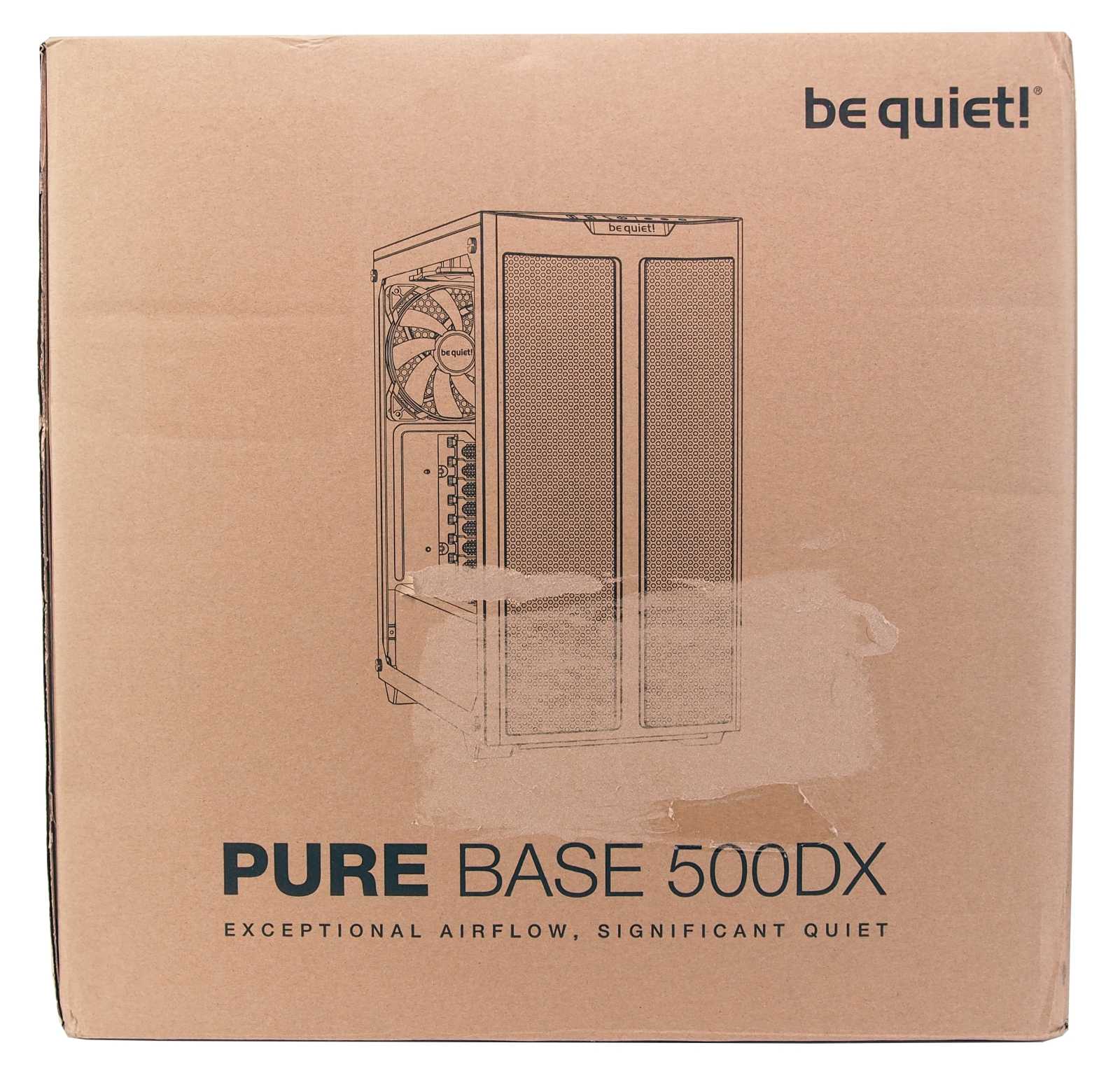 Pure Base 500DX является первым среди корпусов be quiet!, конструкция которого нацелена в первую очередь на создание максимального воздушного потока. Эта концепция включает высокую воздушную проницаемость фронтальных и верхних панелей. Корпус в целом имеет три вентилятора Pure Wings 2140 мм: для достижения более высокой, по сравнению с моделью Pure Base 500, эффективности охлаждения был установлен дополнительный вентилятор под верхней панелью корпуса. Все три вентилятора имеют максимальную скорость вращения 900 об/мин, обеспечивая бесшумную работу. В целом, корпус поддерживает установку до пяти 140 мм вентиляторов или до шести 120 мм моделей. Конструкция шасси позволяет установить радиаторы водяного охлаждения до 240 мм в верхней или до 360 мм в передней частях корпуса.