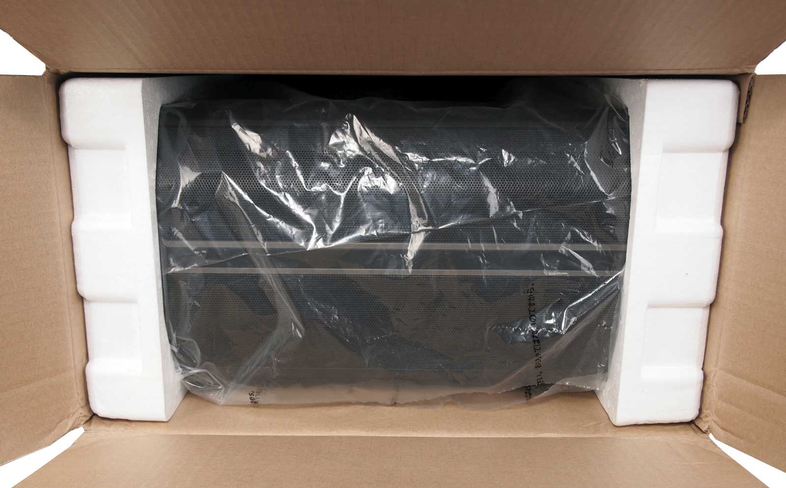 На время транспортировки Pure Base 500DX находится в полиэтиленовом пакете, будучи зажатым между двумя блоками пенопласта.