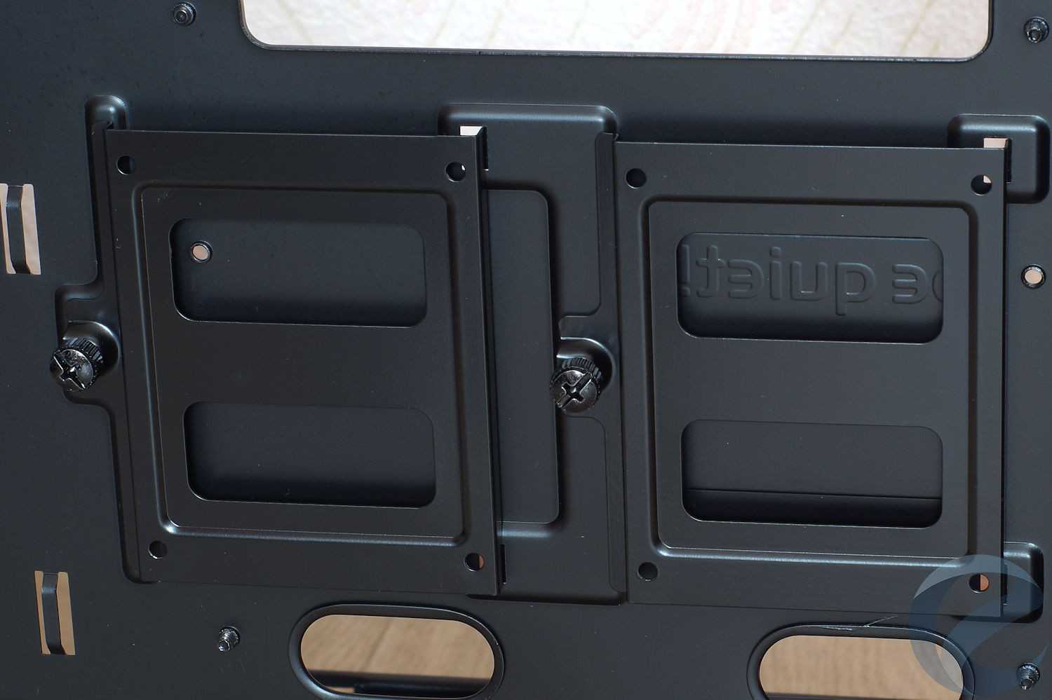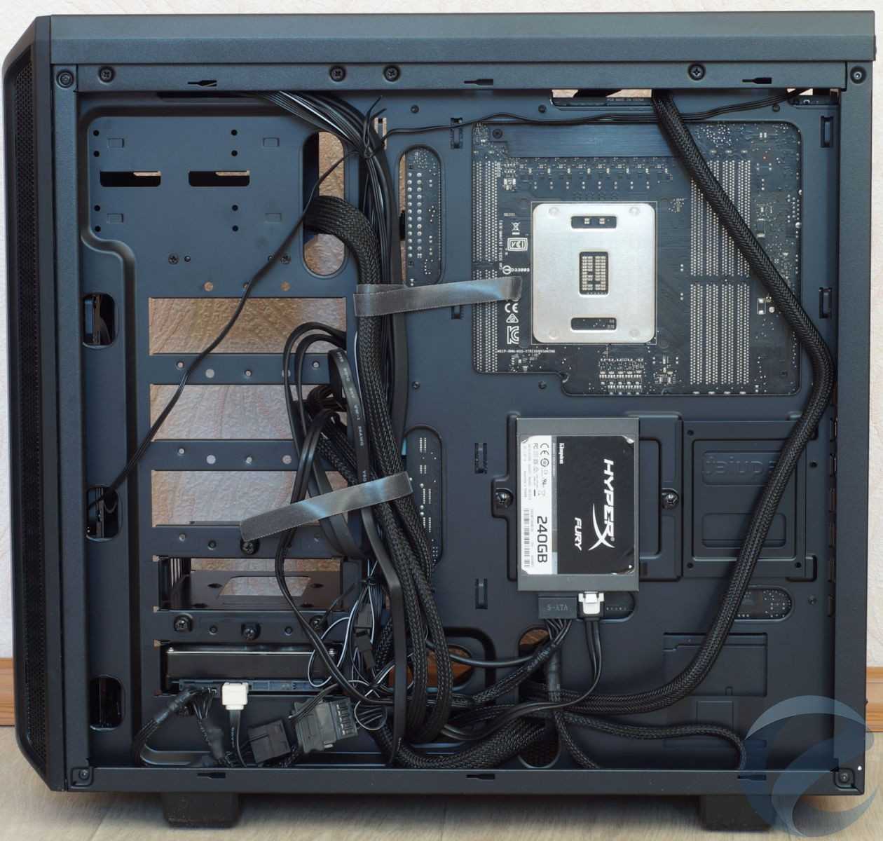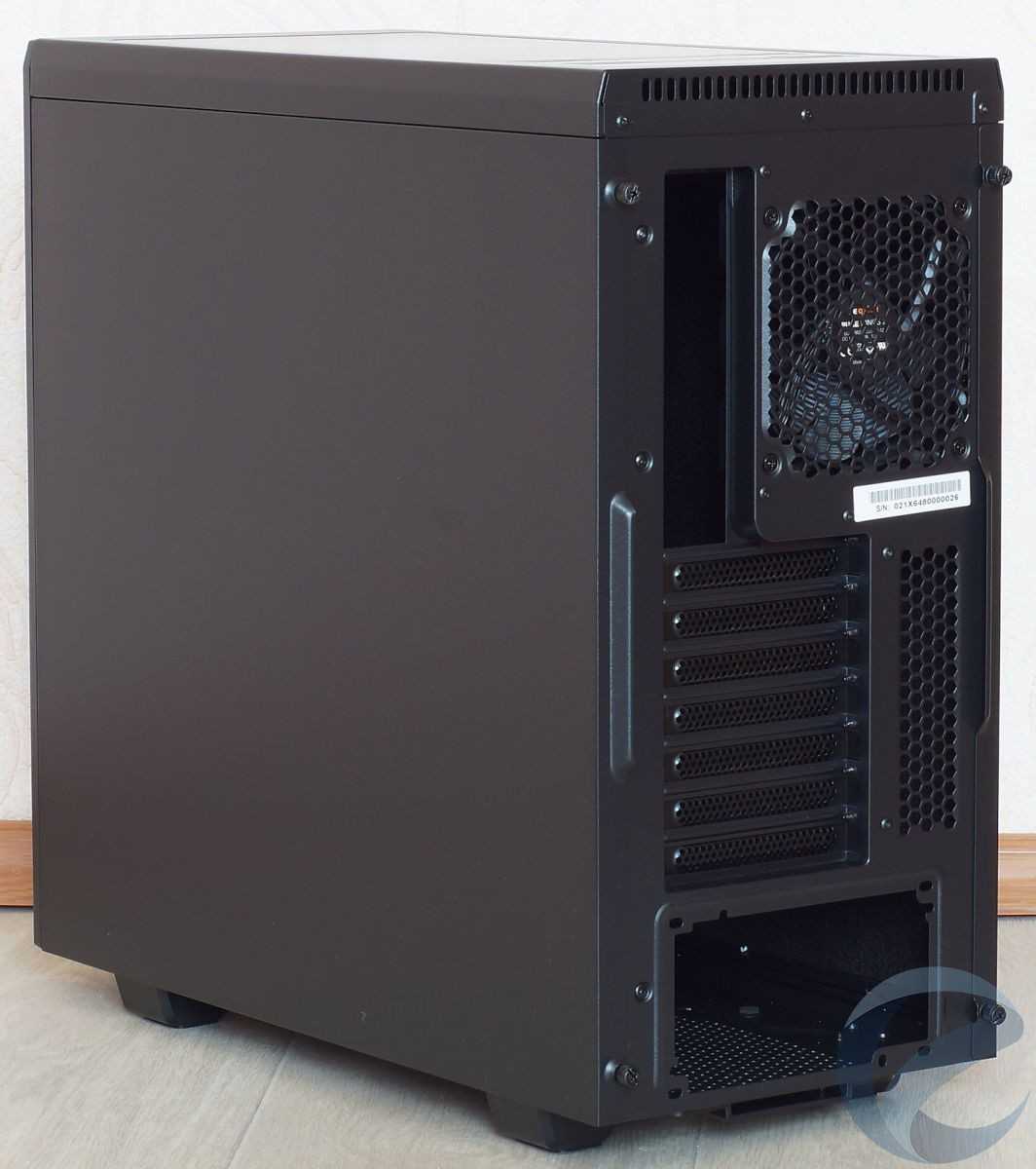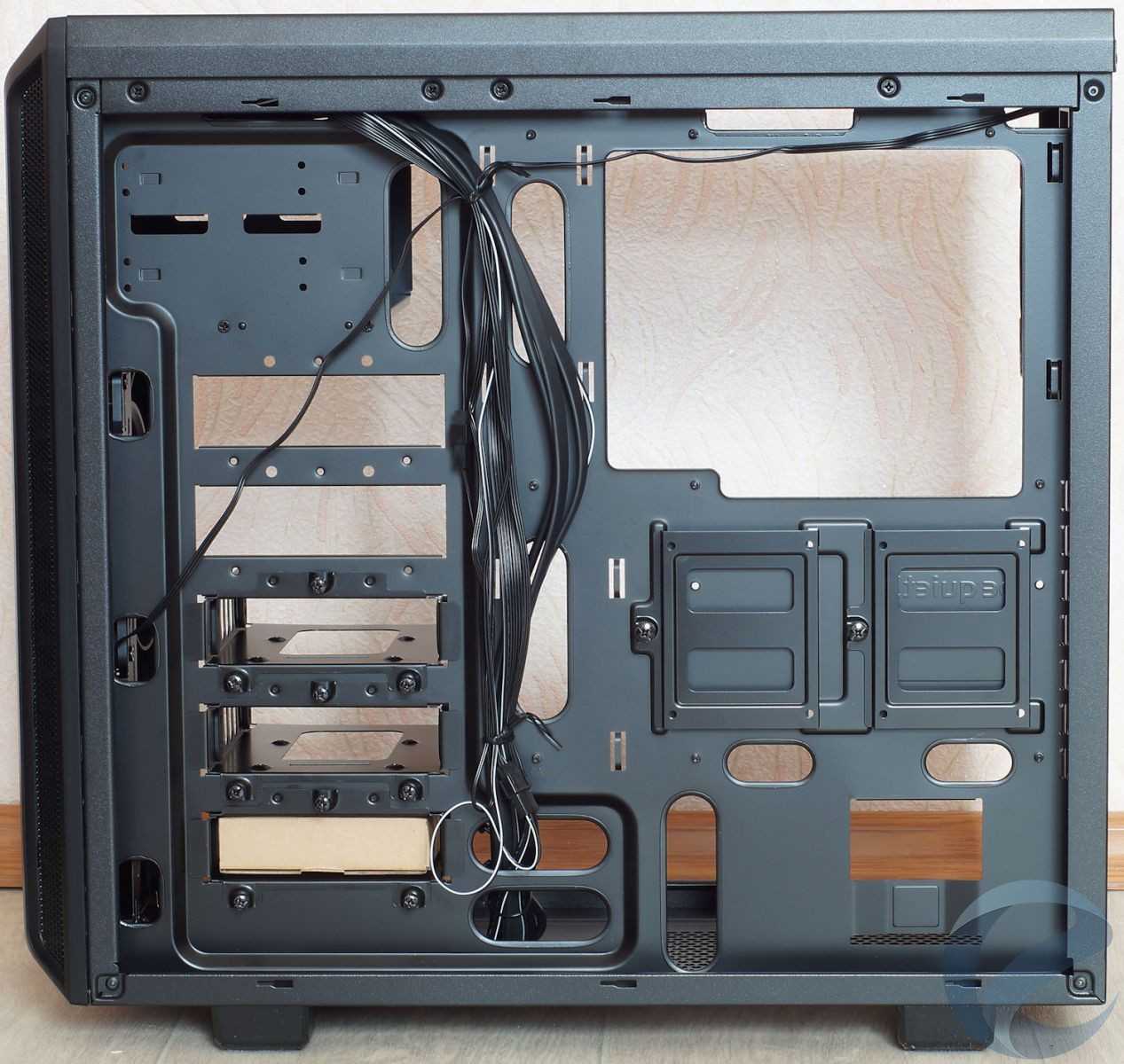 В завершение описания внутреннего строения корпуса отметим, что отверстия, в которых проходят кабели, не имеют силиконовых заглушек, как в старших моделях корпусов be quiet!, хотя все края металла аккуратно завальцованы. Повредить о них руки невозможно.