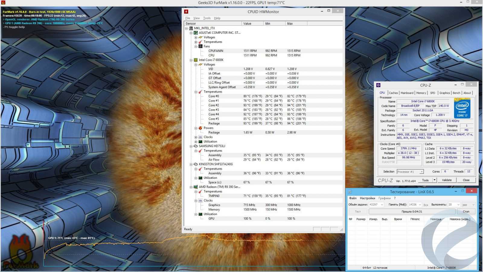 - Видеокарта: ASUS Radeon R9 390 8Gb DirectCU II (R9390-DC2-8GD5);