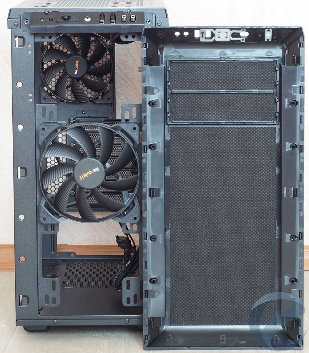 - Применение двух тихих (120 мм и 140 мм) вентиляторов be quiet! Pure Wings 2;