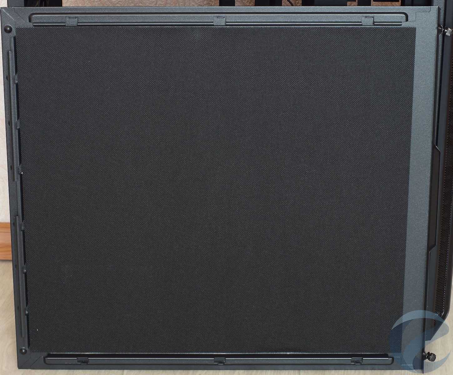 Передняя панель корпуса легко снимается и с внутренней стороны наклеен звукопоглощающий материал. Таким образом мы получаем доступ к установке 120/140 мм вентиляторов или радиатора с размерами до 360 мм. Чистить от пыли придется саму съемную панель, что будет не очень удобно.
