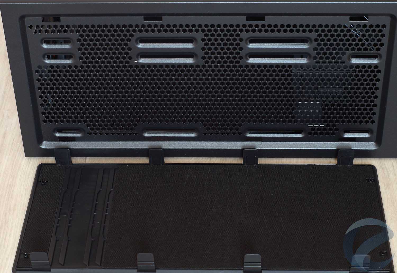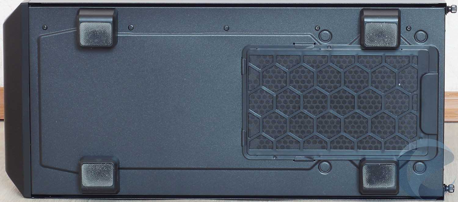 На дне корпуса присутствует перфорация в области установки блока питания, закрытая съемным противопылевым фильтром.