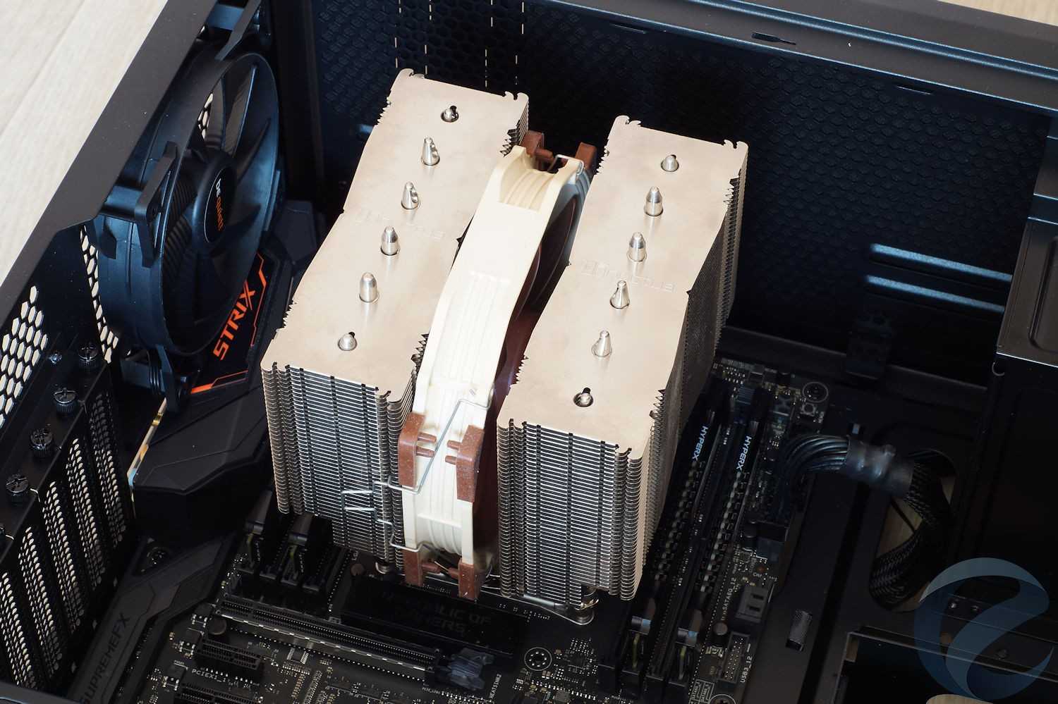 Внушительный девятилопастной кулер с массивным радиатором работает практически бесшумно даже при максимальных оборотах и при этом обеспечивает эффективное охлаждение. За снижение шума здесь отвечает фирменная технология Silent Wings, которая подразумевает использование гофрированной структуры лопастей вентилятора.