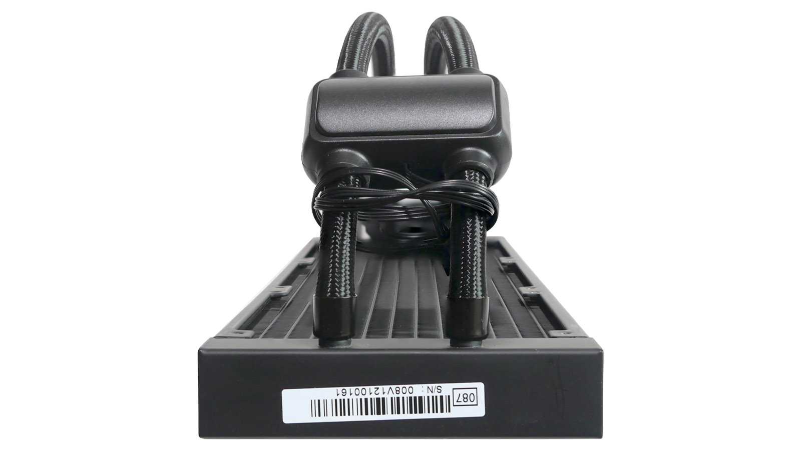 Будь спокоен! переместил жидкостной насос к радиатору, как встроенный. Хотя это, вероятно, является хорошим предзнаменованием для долговечности насоса (поскольку он не подвергается непосредственному воздействию очень высоких температур) и снижает уровень шума за счет гашения его микровибраций, этот подход также создает еще четыре точки подключения. Как правило, стыки и другие точки соединения являются самыми слабыми звеньями в конструкции кулера AIO, поэтому дополнительные точки здесь повышают вероятность механического повреждения.