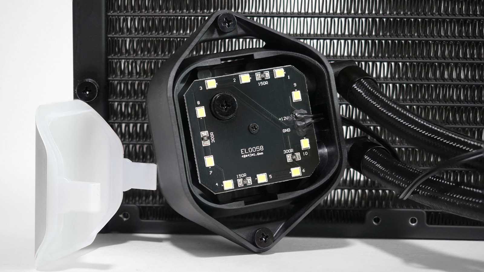 И управлять ею можно как через материнку, так и по пультику — проводному, но всё же. RGB находится на помпе и выглядит именно так, как вы ожидаете видеть RGB-подсветку от be quiet!