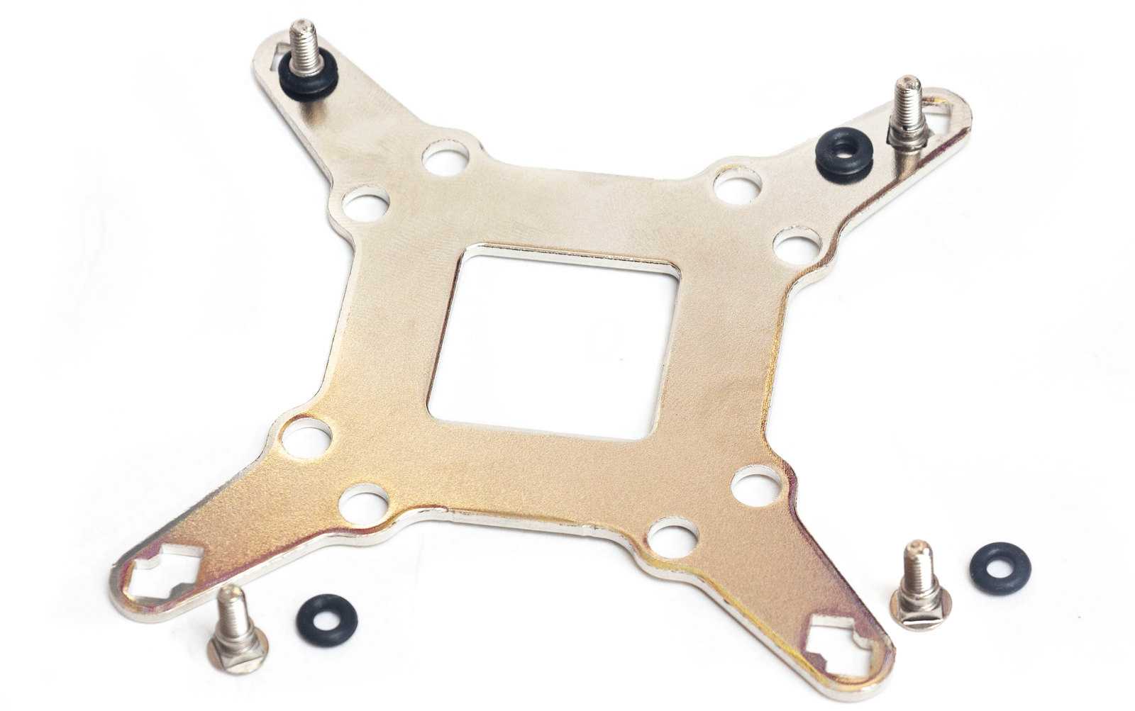 Для платформы intel вставляем в бэкплейт в нужные отверстия винты, которые фиксируются от проворачивания четырехгранными выступами. Закрепляются они резиновыми шайбами-прокладками.