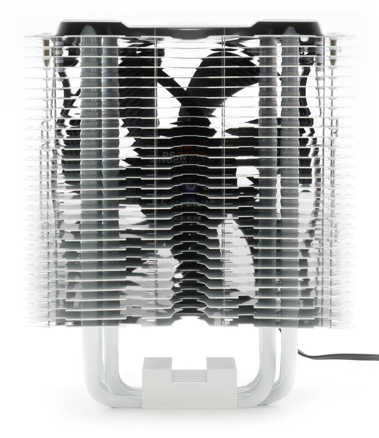 За активную часть отвечает фирменный вентилятор серии Shadow Wings 2 и, что характерно, он черного цвета. Почему производителю было бы не лучше задействовать белую модель? Официального ответа нет, можем лишь предположить, что высокооборотистый вентилятор данной линейки в белоснежном варианте пока не производится. С другой стороны, мы имеем яркое четкое сочетание светлого и темного, добра и зла, киновселенной DC и … Ах да, отвлекся.