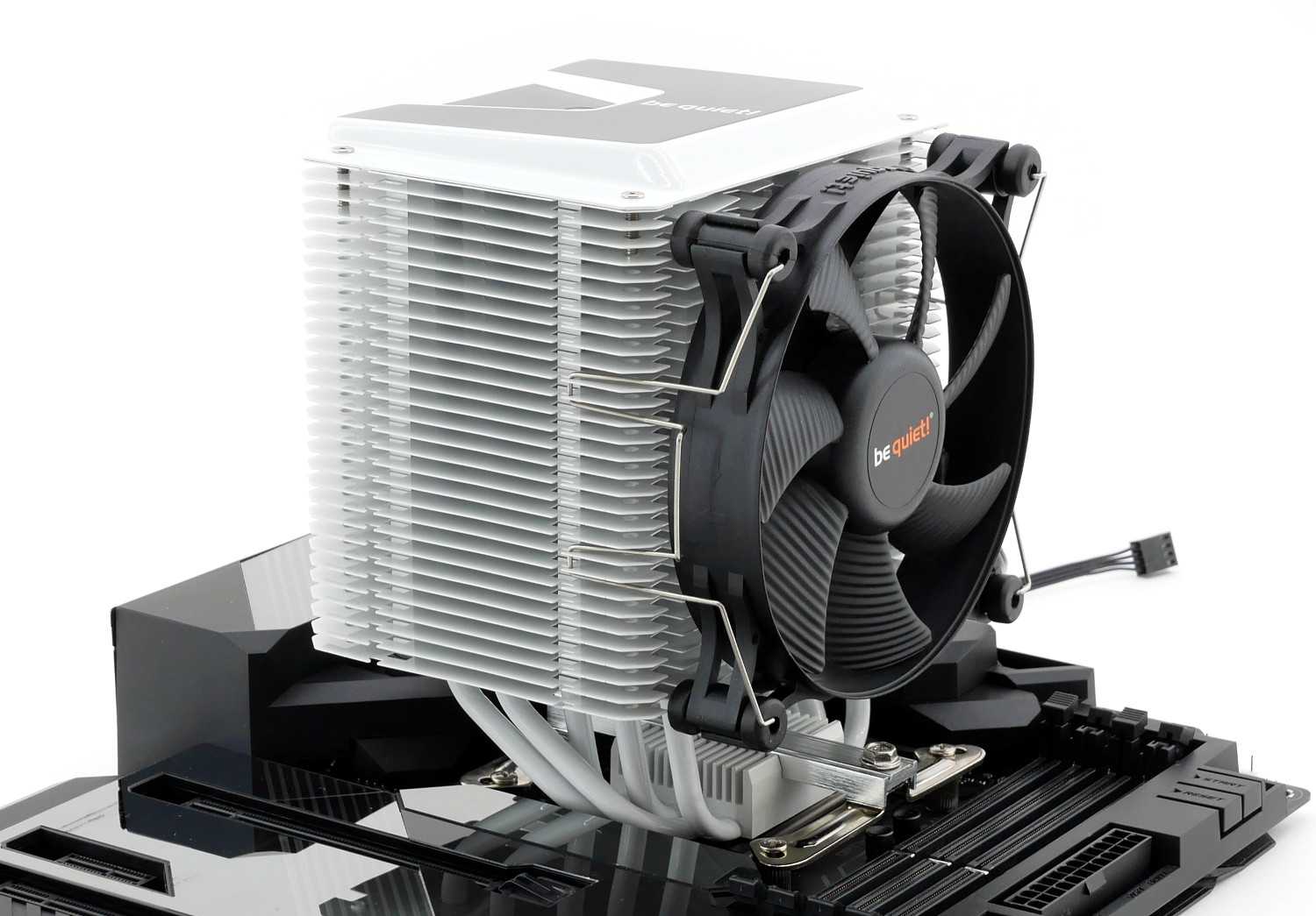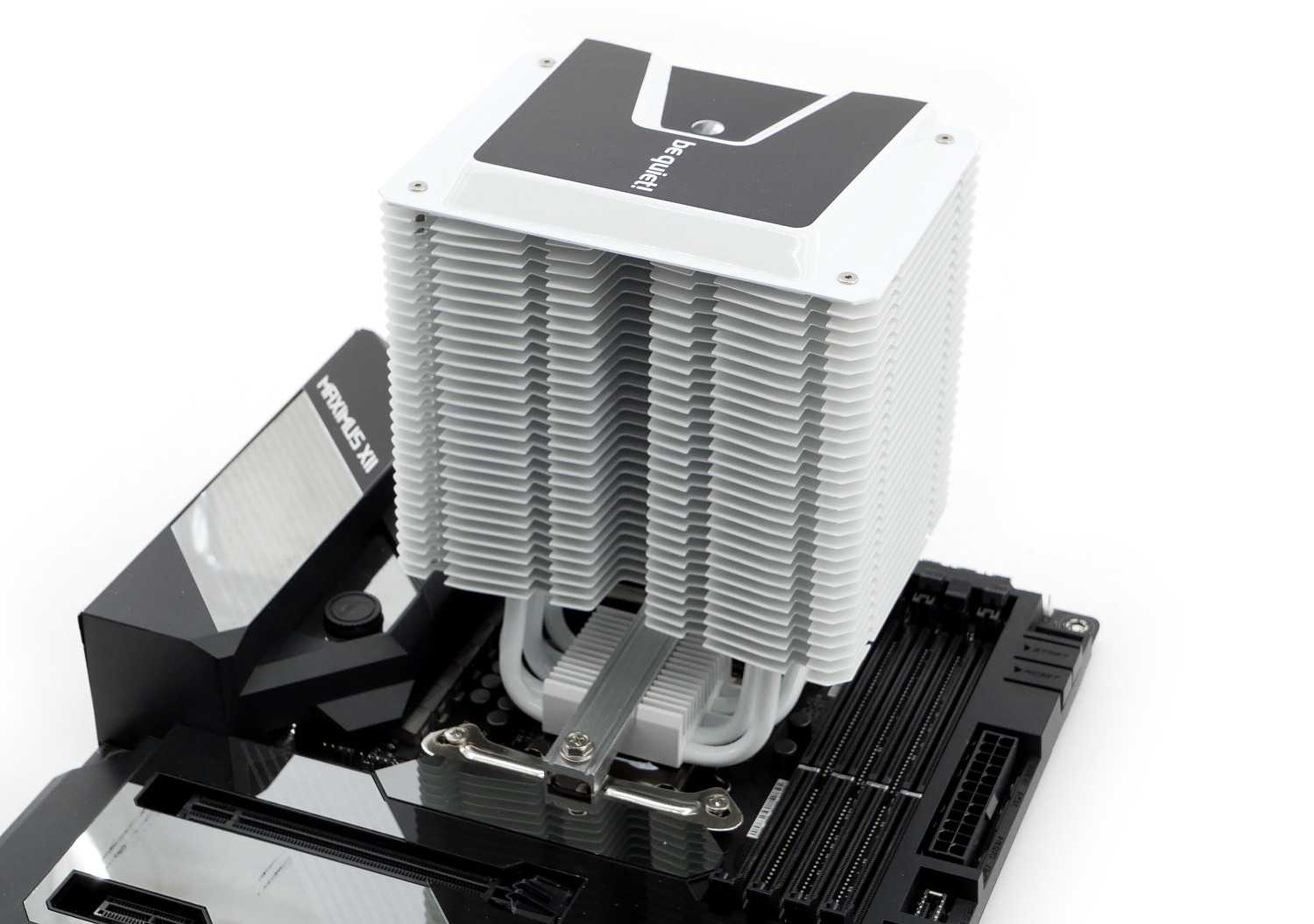 Что нас выручит? Поворот кулера be quiet! Shadow Rock 3 White на 90*, чем мы и планируем заняться. Это поможет расположить все пять тепловых трубок не параллельно, а перпендикулярно кристаллу CPU.
