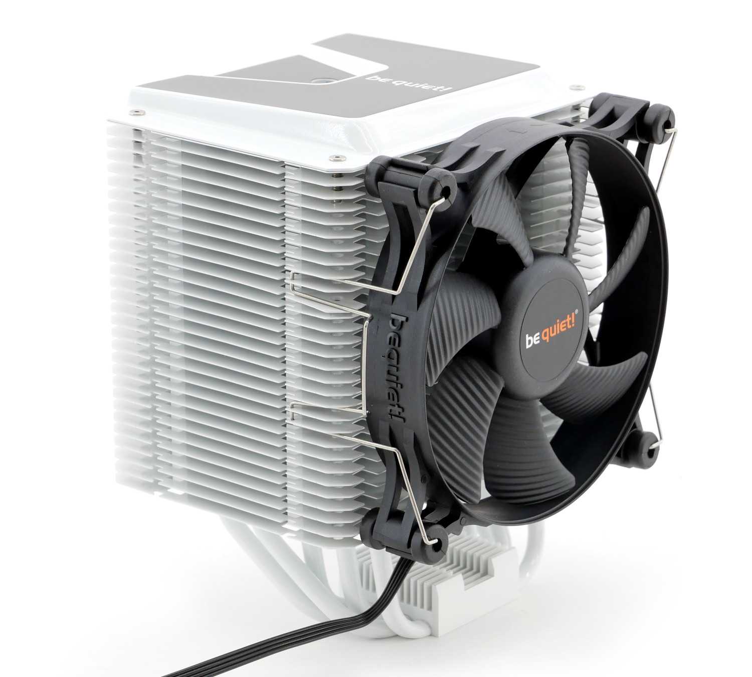 Вентилятор кулера be quiet! Shadow Rock 3 White простым движением вешается на ребра, позволяя задавать высоту от поверхности материнской платы.
