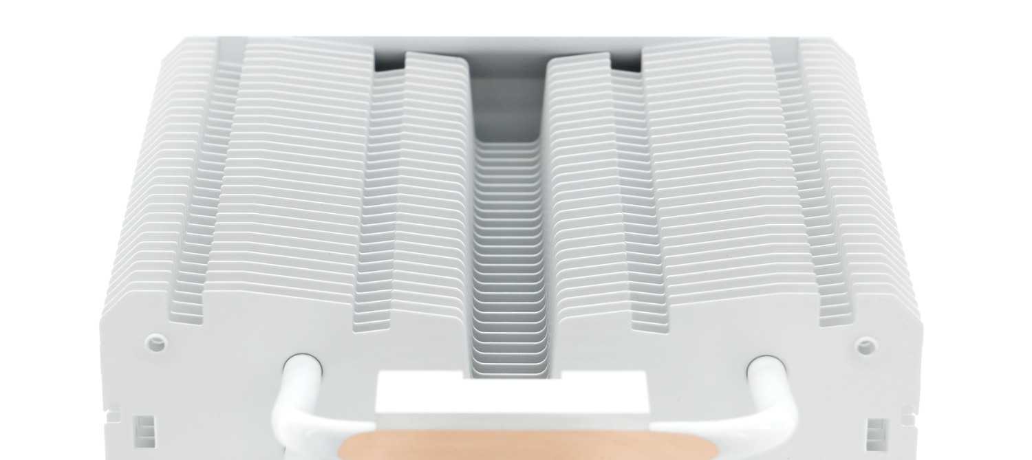 И все белоснежные, как на подбор! Как и пластины радиатора, и часть верхней крышки. Которая, кстати, тоже ассиметричная в разрезе, но выглядит стильно. Чёрные элементы лишь добавляют ей утончённости. Хотя и хотелось бы иметь возможность их заменить на полностью белые.