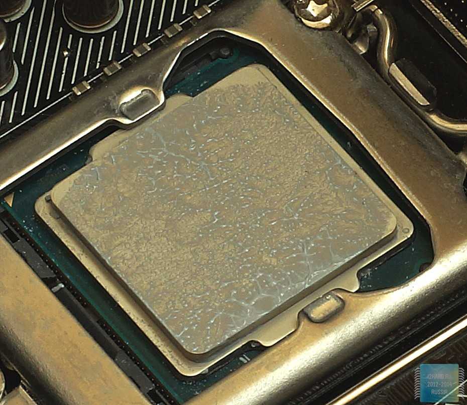 Для полноты картины основное тестирование проводилось при разгоне центрального процессора Intel Core i7-4770K до стабильных 4,5 ГГц (дефолт — 3,5 ГГц (3,9 ГГц в Turbo Boost режиме) при 0,99 В). Для этого нам пришлось увеличить напряжение VCore до 1,25 В. Напомним, что максимальная расчетная мощность (уровень TDP) этого «камня» составляет низкие 84 Вт. Максимальная температура, при которой не активируется троттлинг, не должна превышать отметки 100 градусов Цельсия. Однако процессор известен тем, что в нем используется весьма посредственный термоинтерфейс. Поэтому даже небольшой разгон до 4,2-4,5 ГГц способен очень сильно «нагрузить» любой процессорный кулер. Плюс свои ограничения накладывает строение чипа. Как известно, кристалл Haswell имеет вытянутую прямоугольную форму.