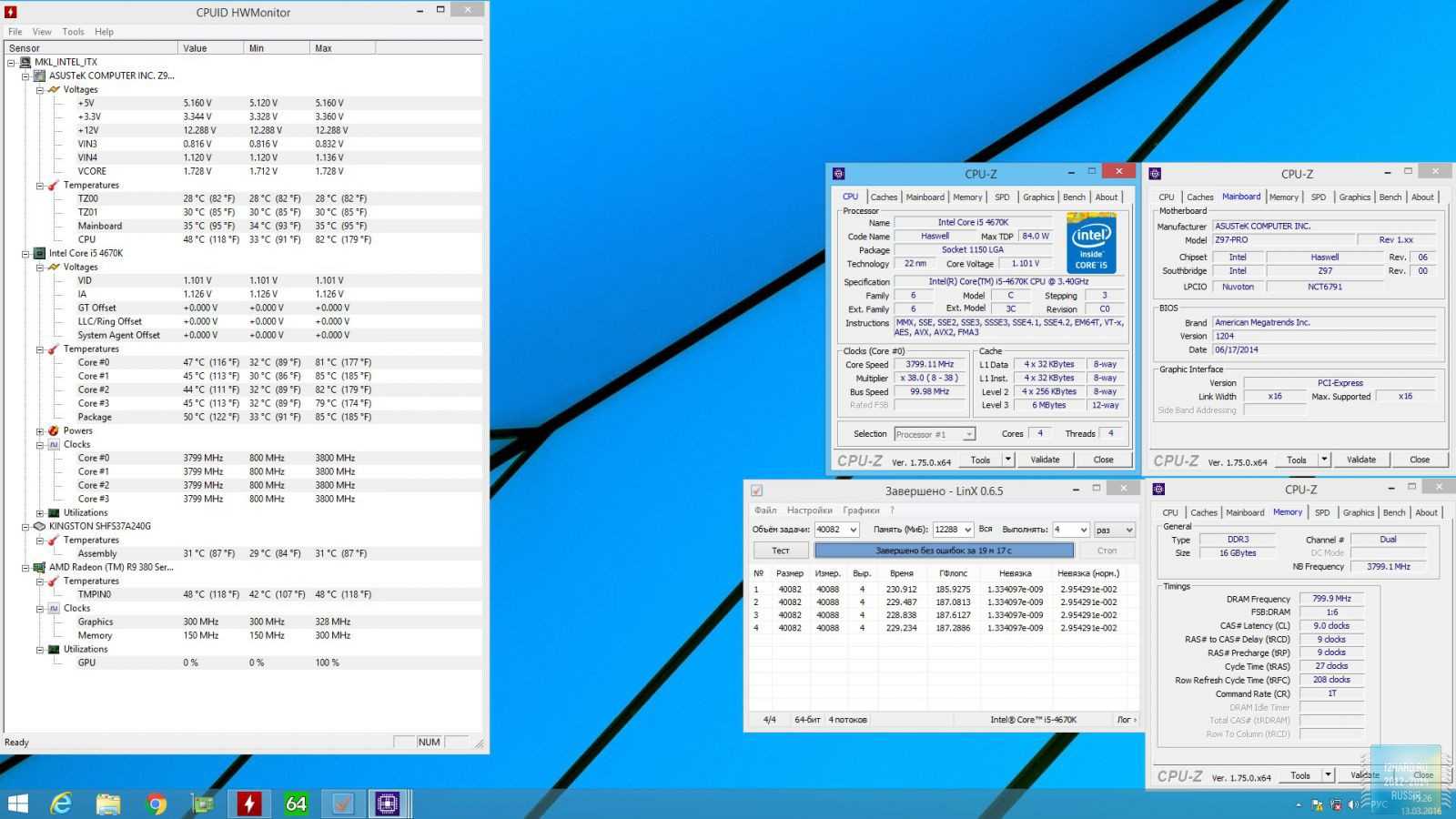 - Центральный процессор: Intel Core i5 4670K (Vcore = 1.000V);