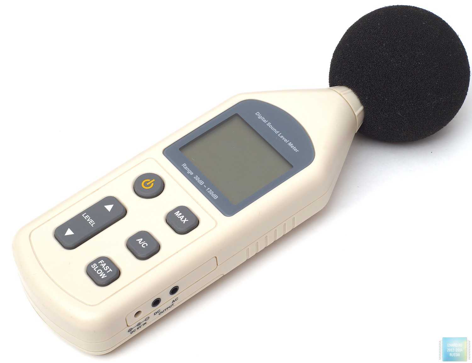 Для измерения уровня шума использовался прибор китайского производства с заявленными характеристиками: