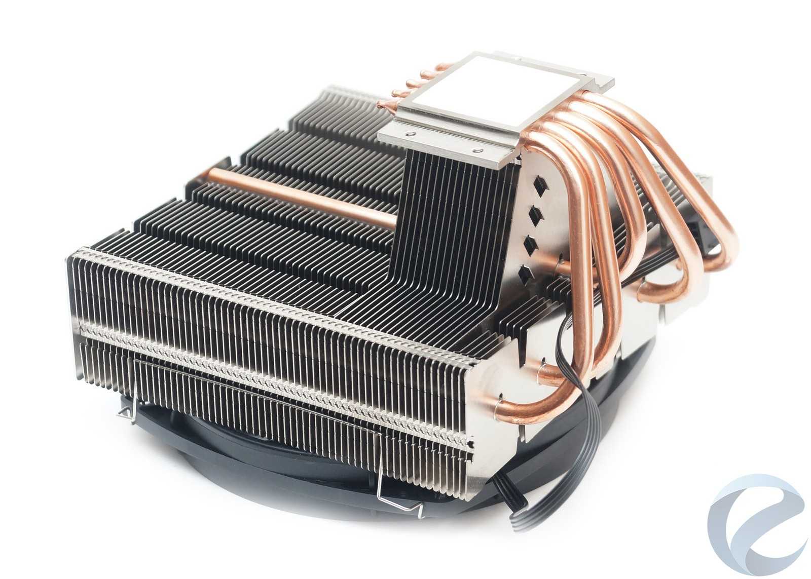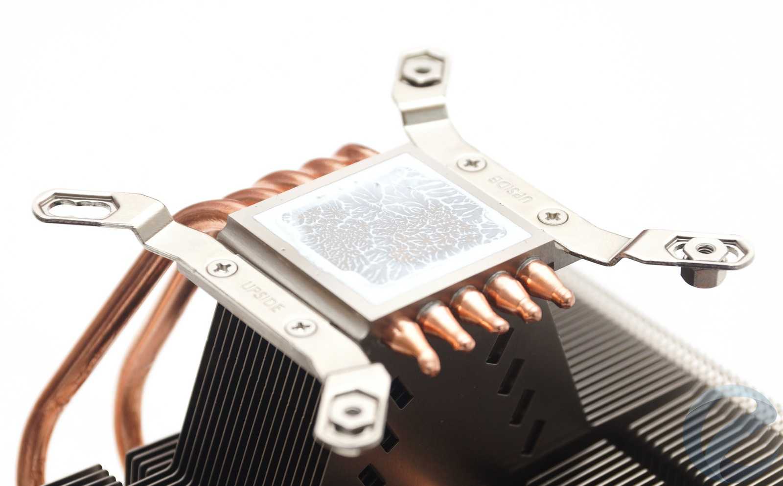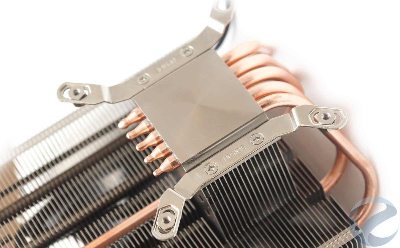 Пластины нанизаны на четыре из пяти тепловых трубок, пятая проходит снаружи в небольшом углублении. Трубки медные, толщиной 6 мм.