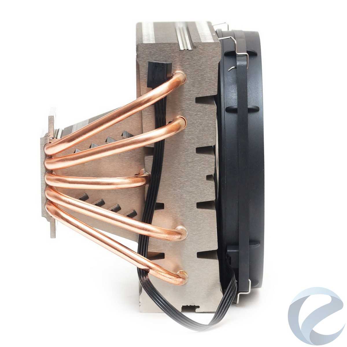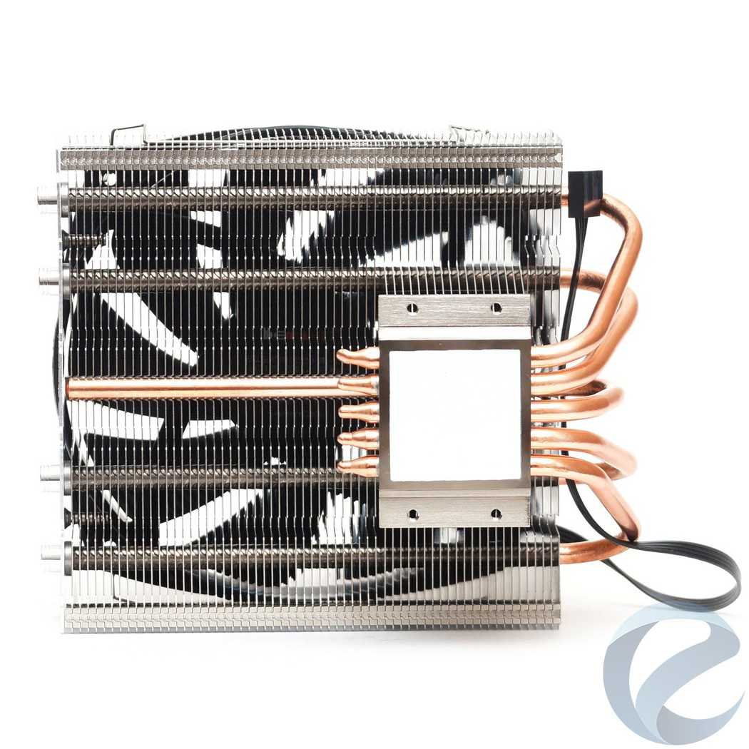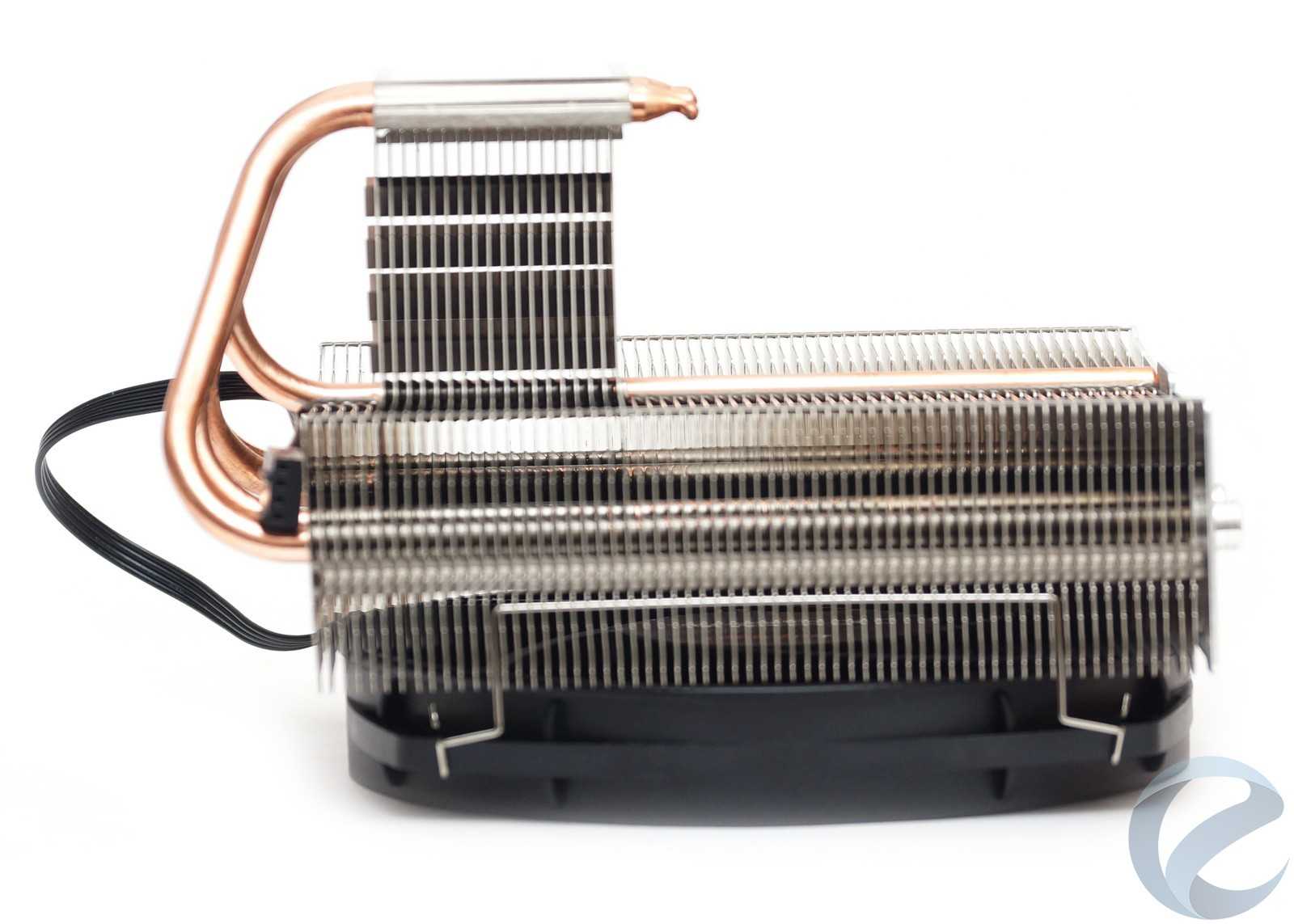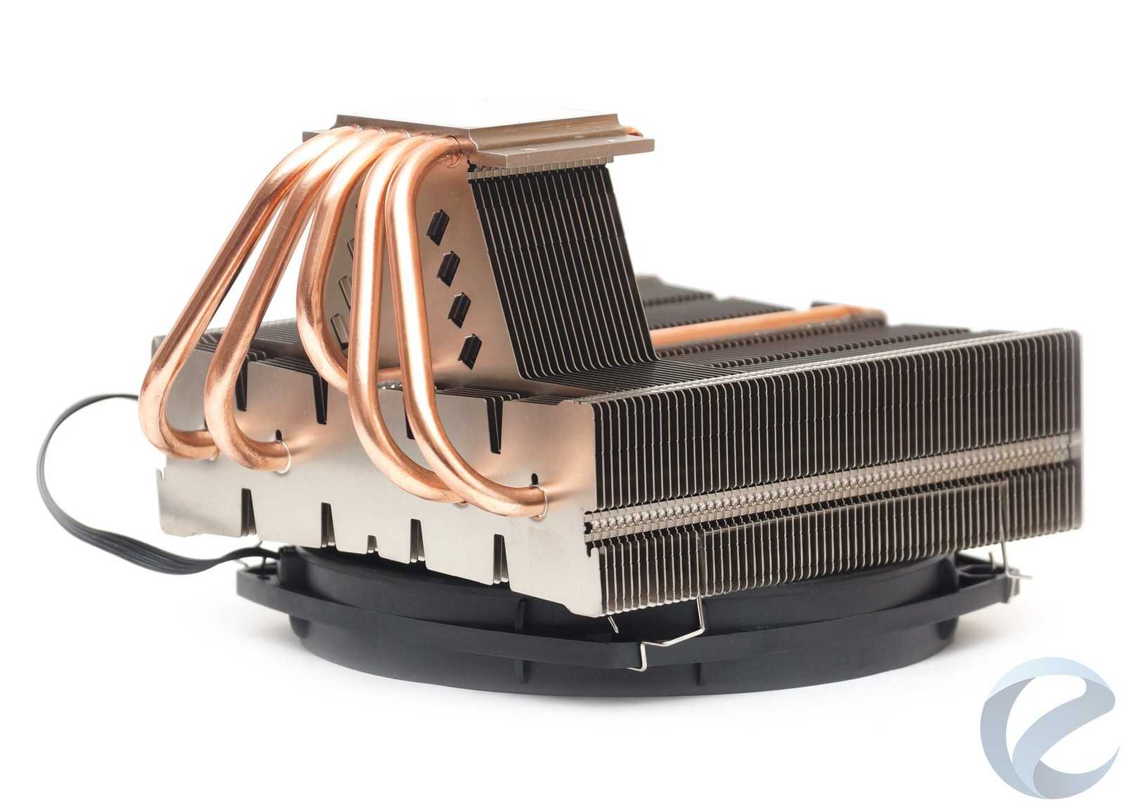 Пластины нанизаны на четыре из пяти тепловых трубок, пятая проходит снаружи в небольшом углублении. Трубки медные, толщиной 6 мм.