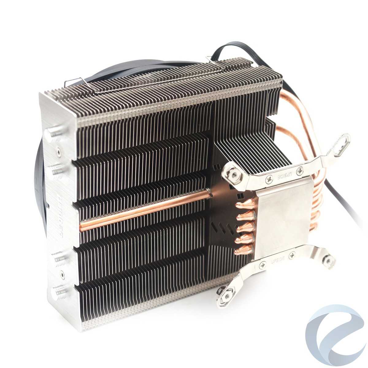 Минусы также исходят из особенностей конструкции: большой размер радиатораиз-за его горизонтальной ориентации может перекрывать верхний слот PCI-e, слотыоперативной памяти на компактных платах mATX формата также могут быть перекрыты,можетотсутстватьвозможностьустановкикорпусноговентилятора на посадочном месте возле интерфейсной панели. Кроме того, крепить кулер удобно только отверткой с обратной стороны материнской платы. Эти особенности необходимо учитывать при приобретении данного кулера.