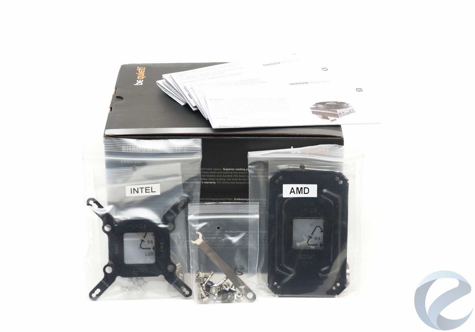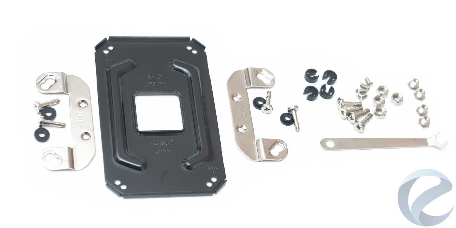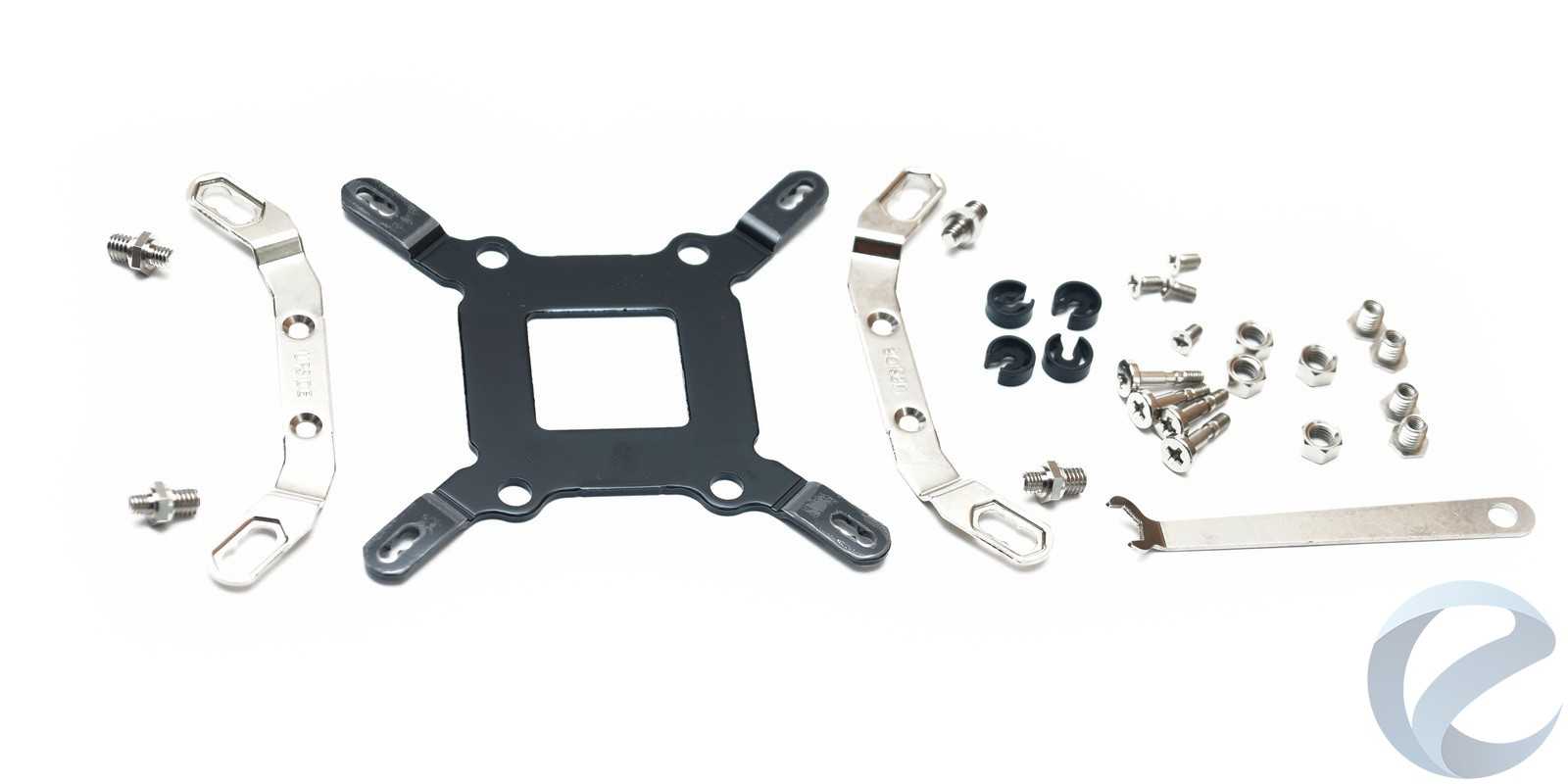 Вместе с be quiet! Shadow Rock TF 2 поставляются два набора креплений для платформ с процессорами AMD и Intel, винты, втулки, шайбы и гайки, а также маленький ключик для них.