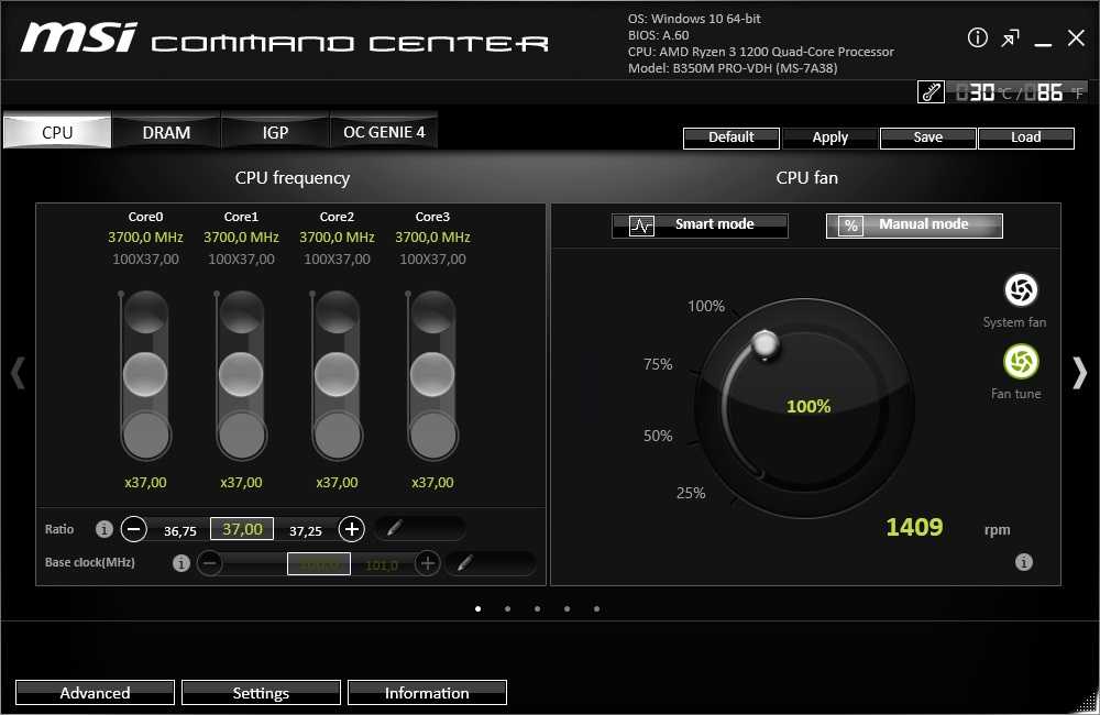 А под самый выход данного обзора я добыл Ryzen 3 1200, разогнал его до 3700 МГц, засунул в стресс-тест AIDA64 и замерял показатели в том числе и через MSI Command Center. На 50% скорости вращения вентилятора Shadow Rock TF2 смог охладить четырёхъядерного красавца до 40/45 градусов по данным Command Center/AIDA, оставаясь при этом почти бесшумным.