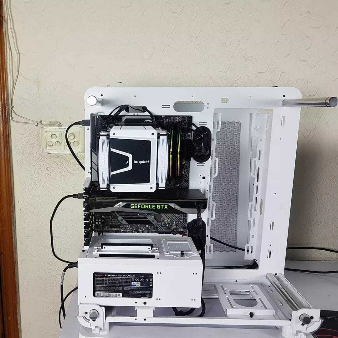 - Thermaltake Core P6 TG Snow Edition in an open frame layout