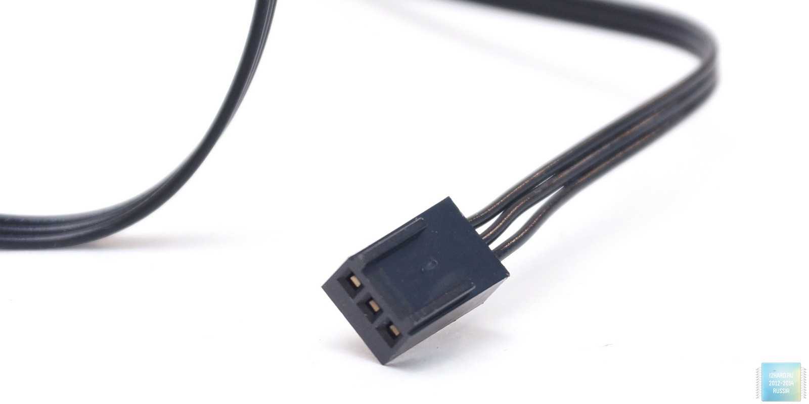Кабель уже без оплетки, с колодкой на 3-пин и длиной 45 см.