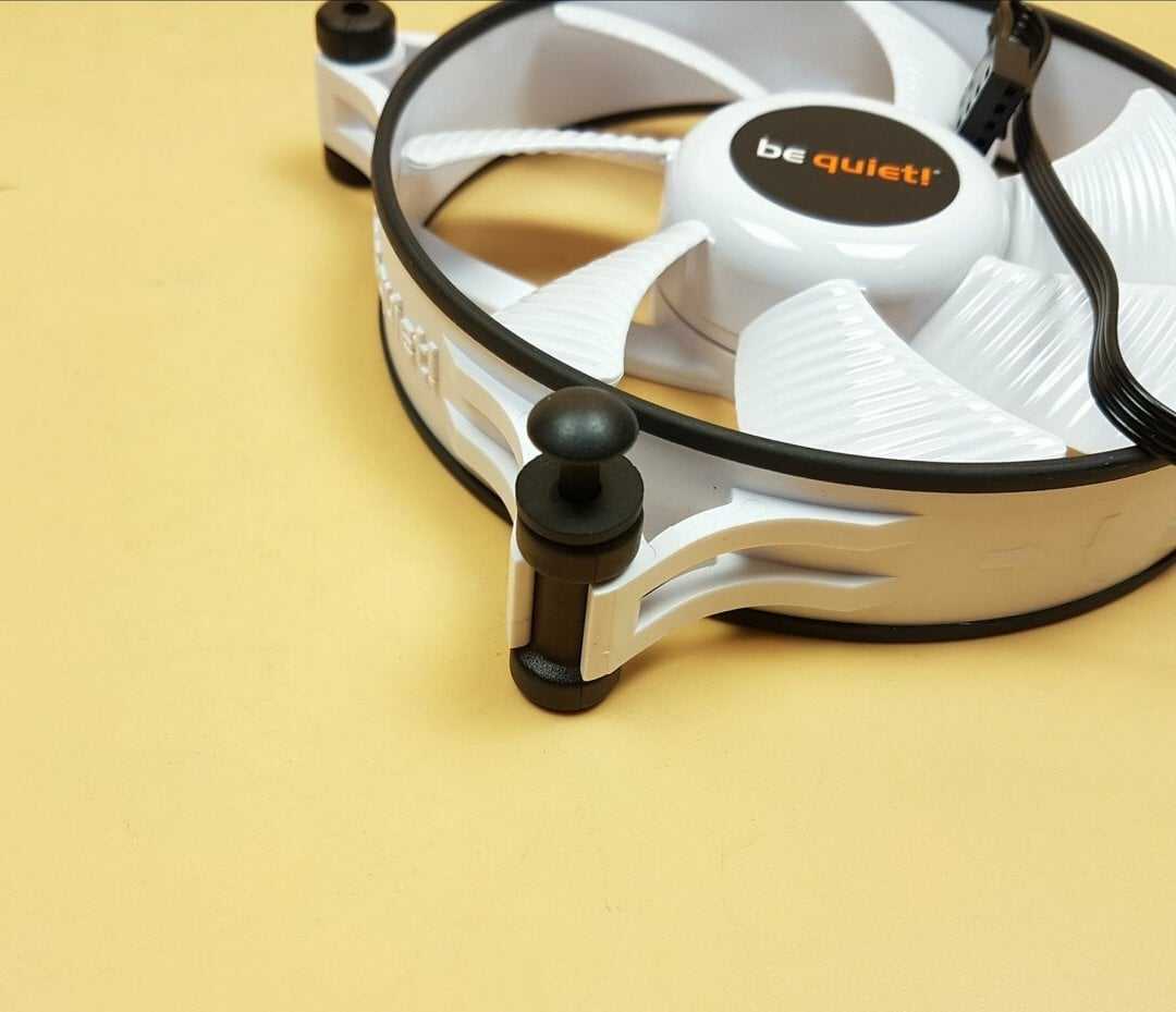 Both fans have rubber mounting on the edges which is removable. Be quiet! has provided 4x push-pins and 4x washers with each fan making the installation toolless and convenient. The blades of the fan have grooves that help in reducing the air drag which would also help in reducing the noise from vibration. The circular frame has rubber padding on both sides which also helps in reducing the vibrational noise.
