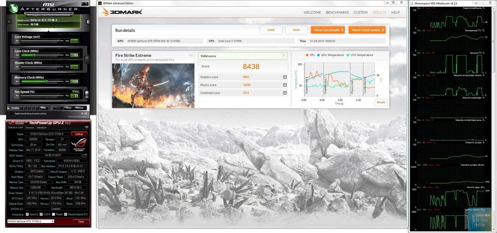 - Видеокарта 1: GeForce GTX TITAN X (1000 / 7000 МГц (ядро/память));