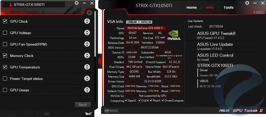 Архитектура Pascal от компании NVIDIA предлагает высокую производительность при сравнительно низком уровне энергопотребления. Это показывает пример GeForce GTX 1050 Ti, карты начального среднего класса, которая потребляет максимум 75 Вт, а потому обходится без дополнительного разъема для электропитания. В её основе — GPU GP107-400-A1 компании NVIDIA c 768 шейдерными и 48 текстурными единицами, а также 32 блоками растеризации. Размер видеопамяти стандарта GDDR5 здесь довольно большой — 4 Гбайт.