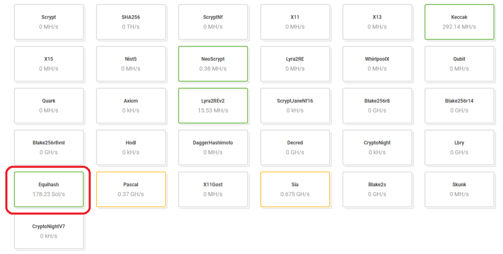 Калькулятор найсхеш и вовсе не показывает скорость добычи эфира. Но среди рекомендуемых для майнинга алгоритмов находится Equihash.