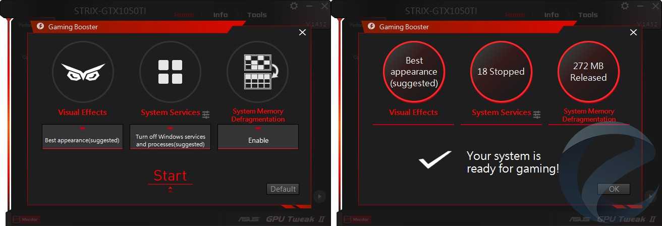 Из упрощенного меню доступен также Gaming Booster благодаря которому вы сможете отключить визуальные эффекты операционной системы, остановить лишние процессы и очистить системную память.