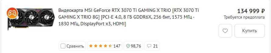| ВЫБОР WoWmooN  | MSI Gaming GeForce RTX3060 TiGaming X Трио | 9,9 |