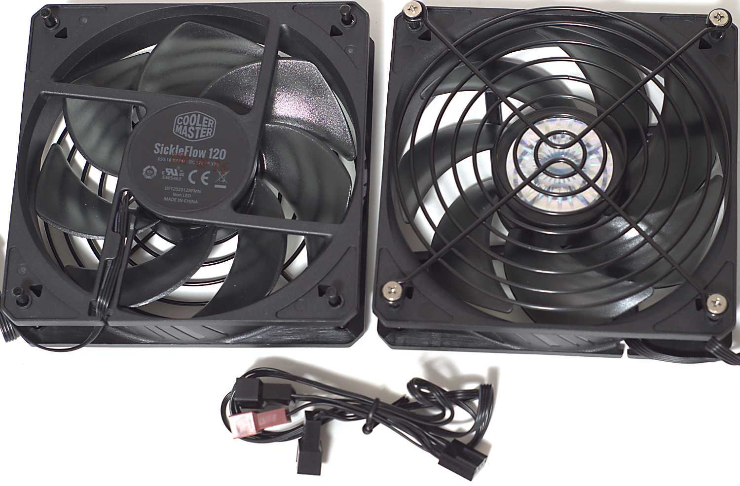 - Наличие в комплекте двух 120 мм вентиляторов Master SickleFlow;