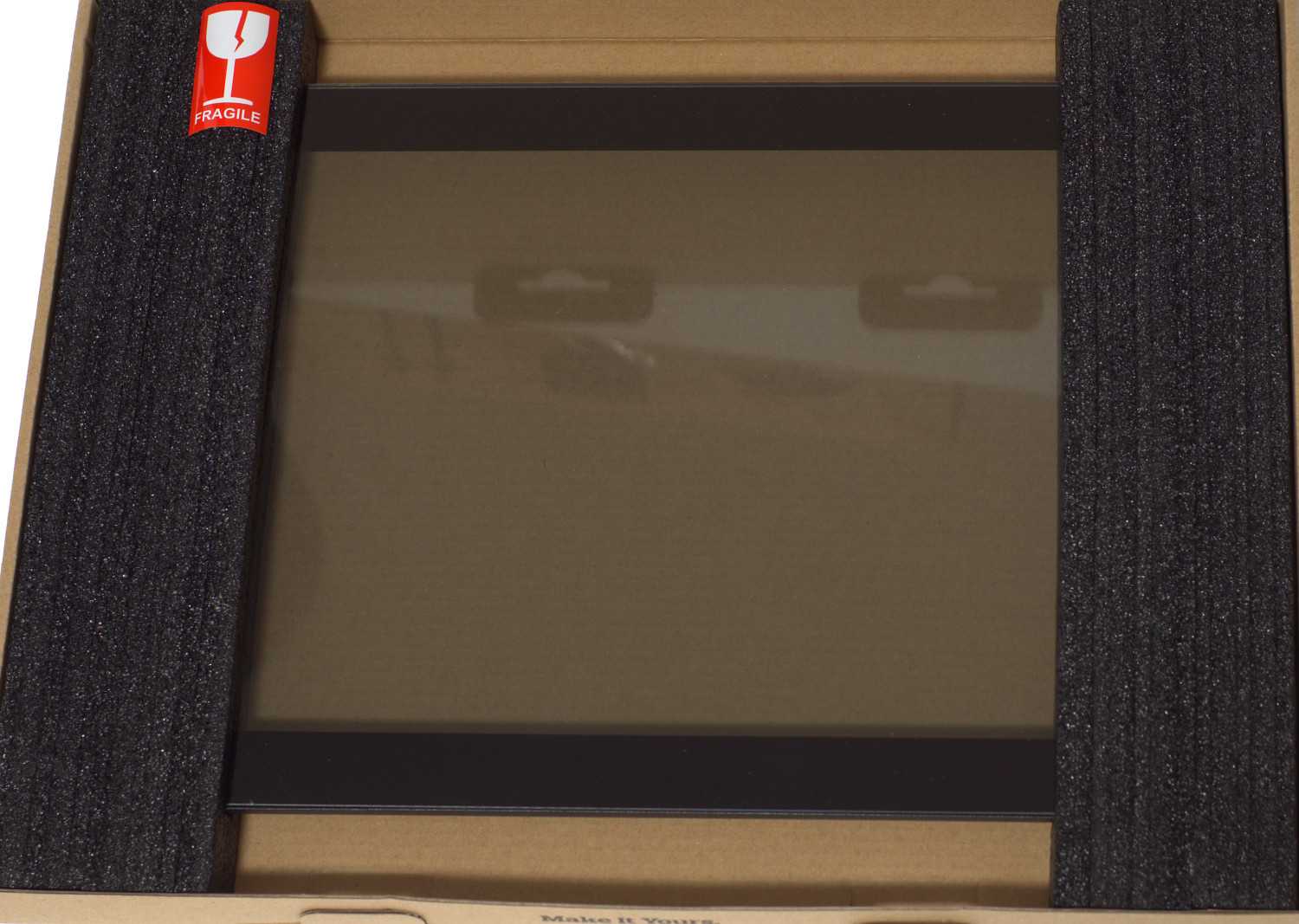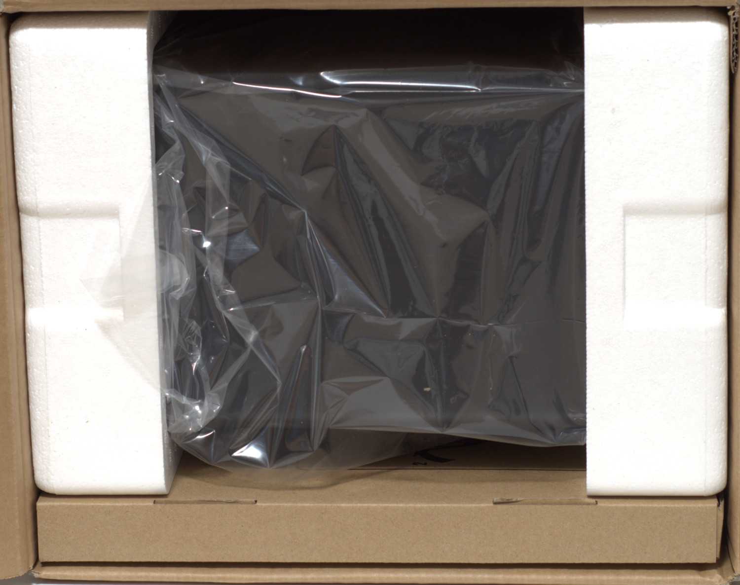 Внутренняя защита у корпуса простая – пенопласт с обоих боков, с одной из широких сторон находится коробка со стеклом. Сам корпус находится в целлофановом пакете.