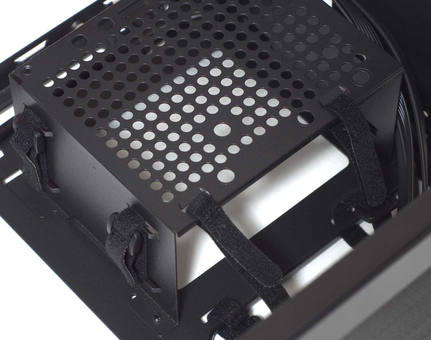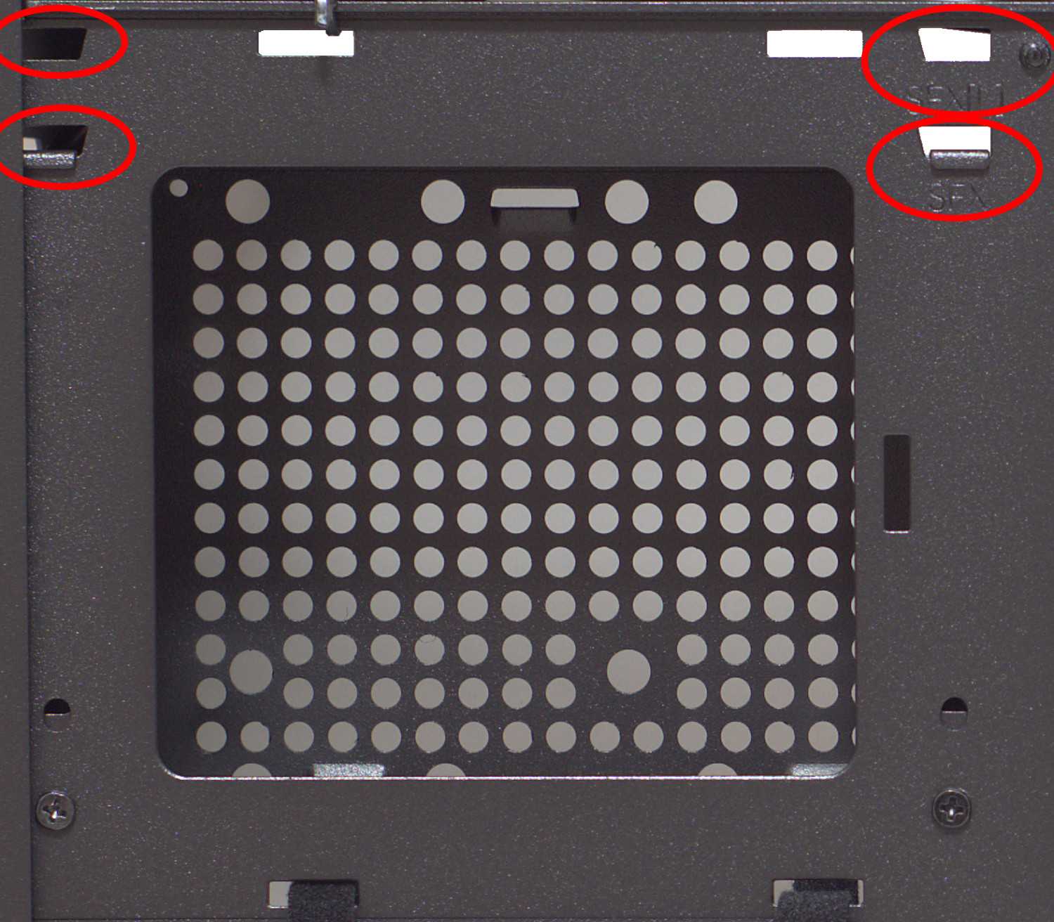 Дополнительное место для 3.5″ предусмотрено на рамке-кожухе SFX/SFX-L блока питания. Устанавливается он на верхней части.