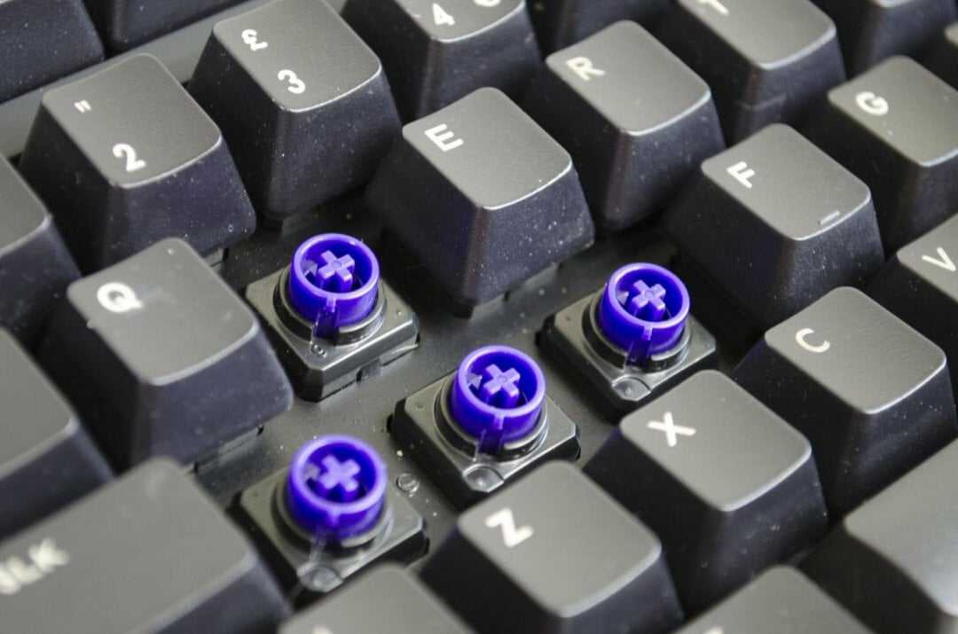 One of the biggest features of the Cooler Master Novatouch TKL’s Topre switches is that they use a Cherry MX stem. The switches feature purple sliders, which were used in Topre’s RealForce keyboards.