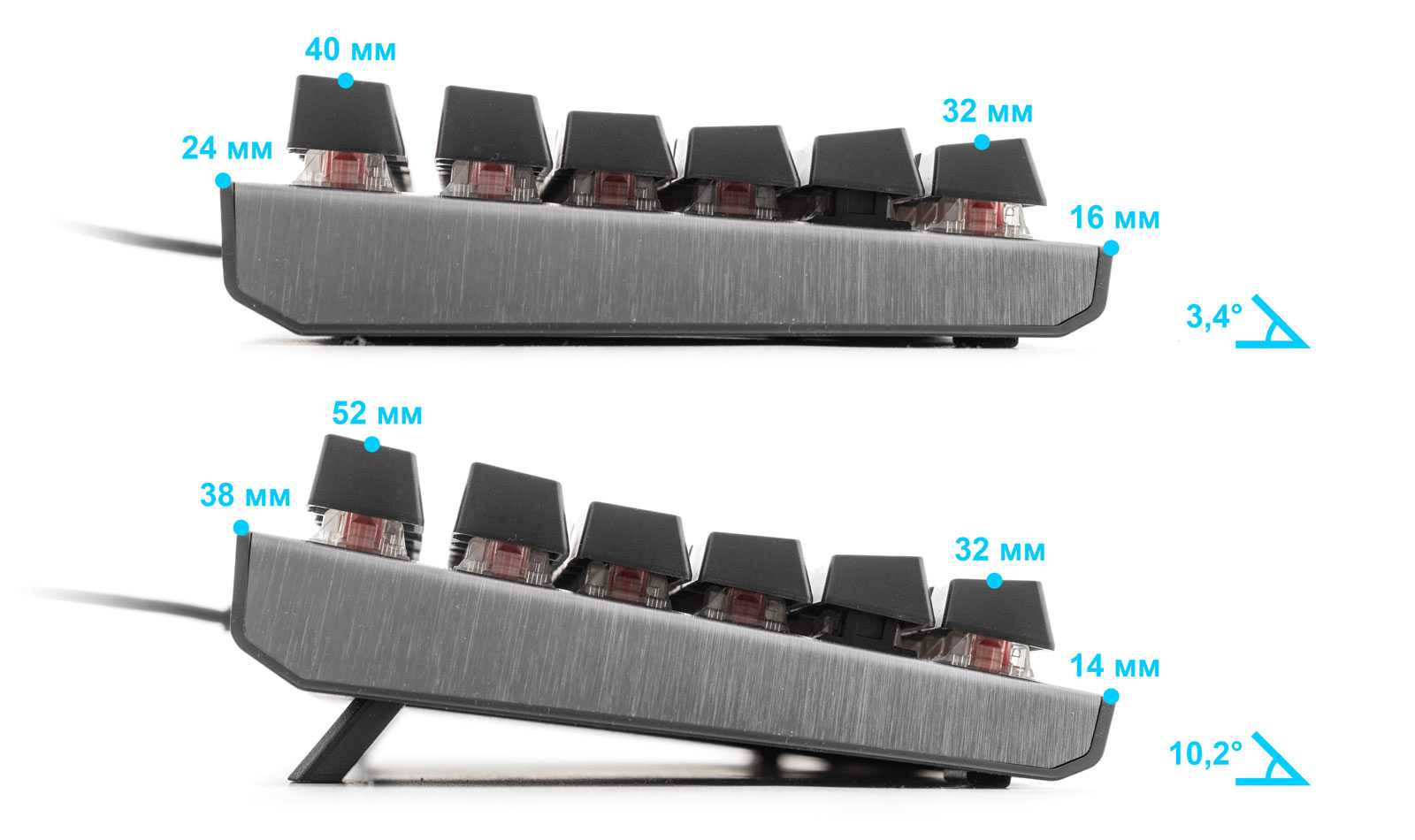 Конструкция и эргономика. Клавиатура обладает низким профилем, поэтому запястья находятся в естественном положении, что не вызывает усталости долгое время. С раскладными ножками клавиатурой пользоваться было удобнее.