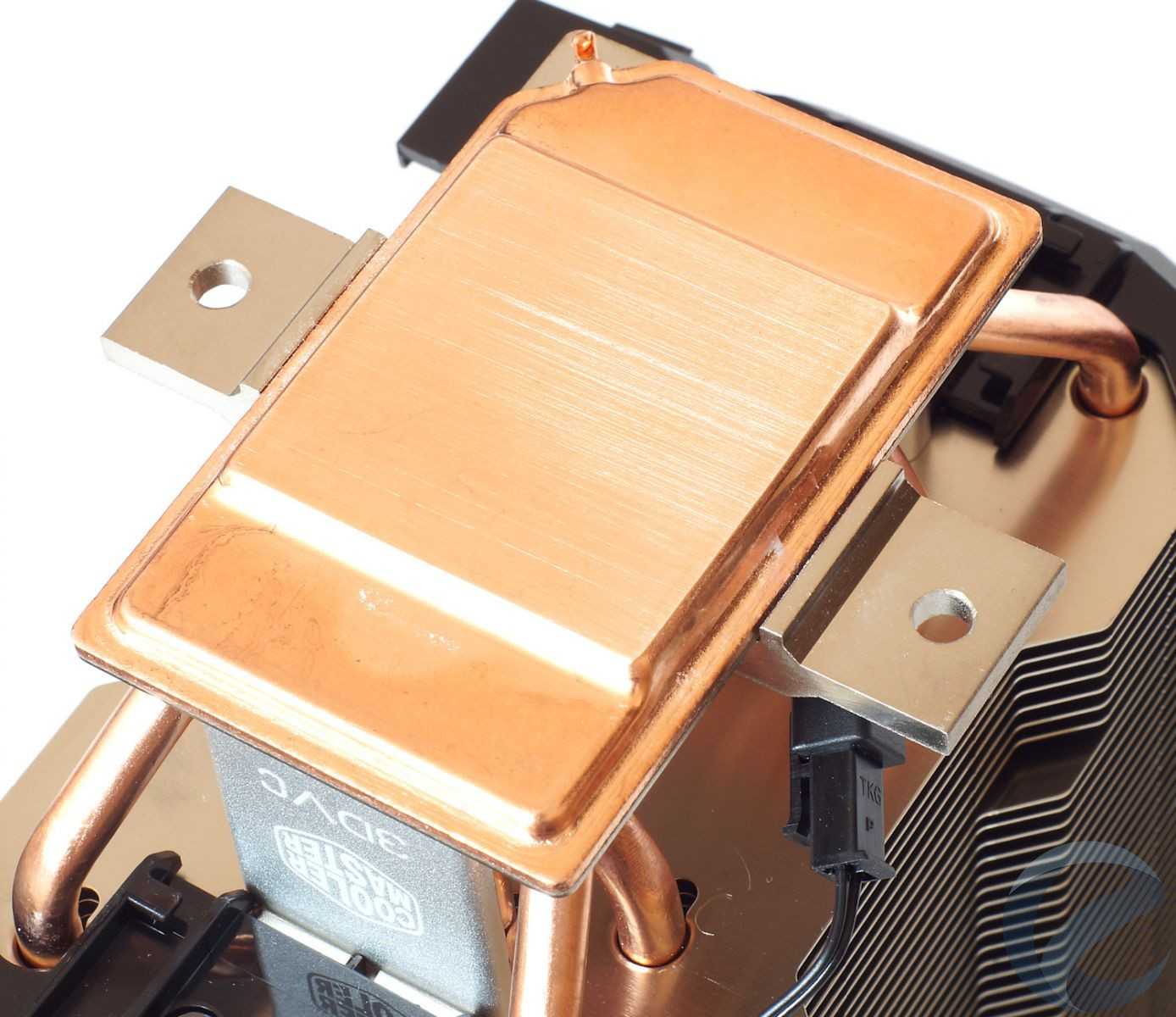 Конструкцию дополняют еще четыре 6 мм тепловые трубки, контактирующие с верхней частью испарительной камеры через пайку.